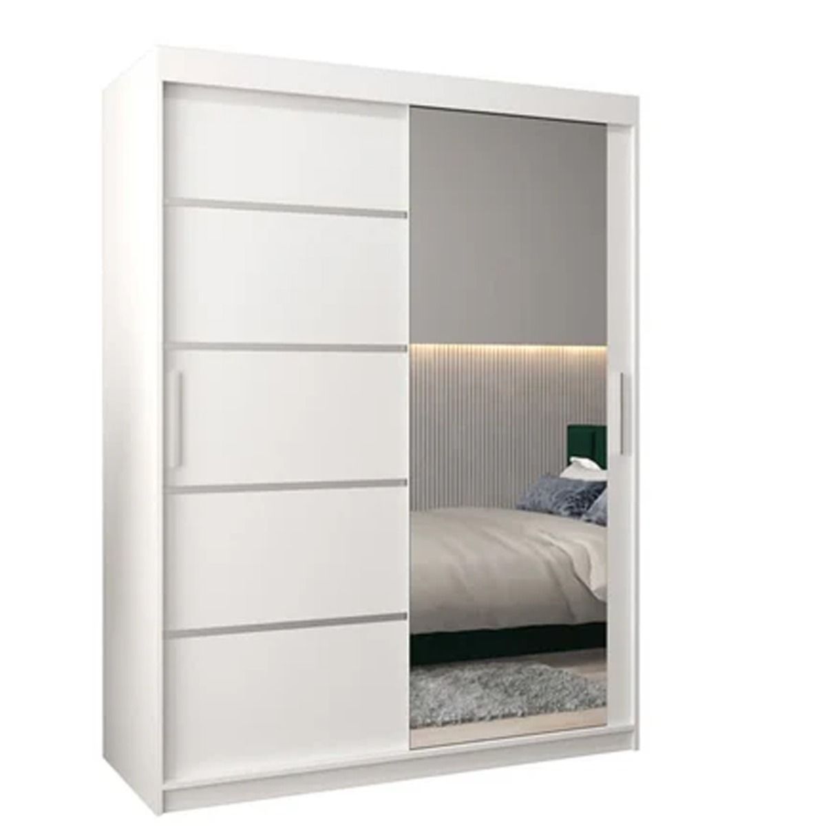 Sliding Wardrobe - VICENZA II 2 Door Mirrored Wardrobe White 150cm