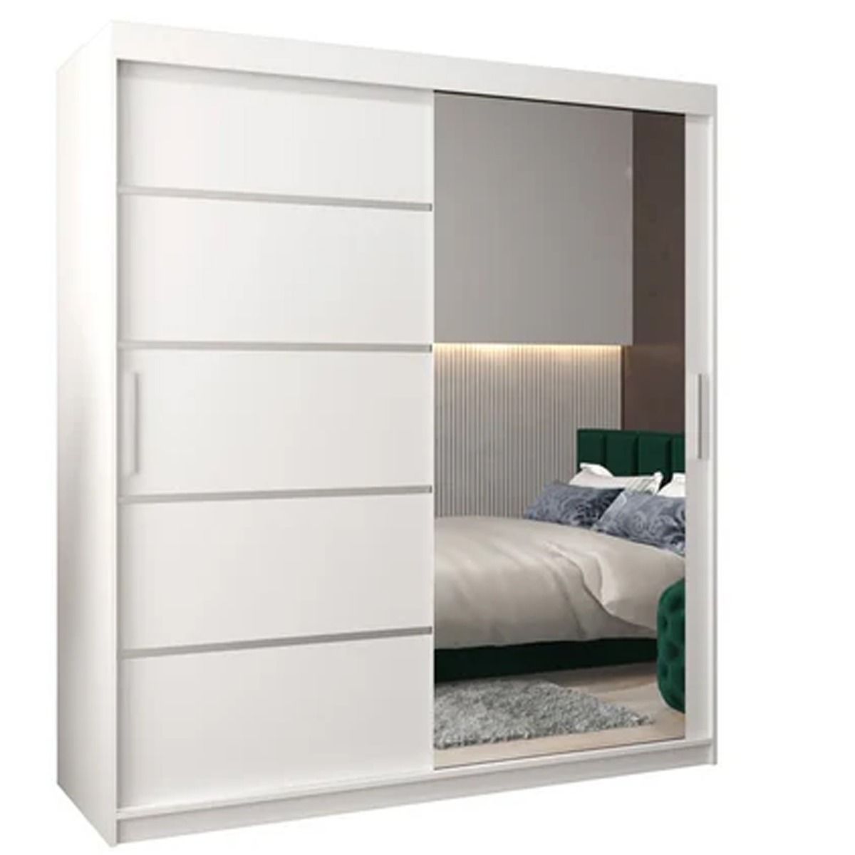 Sliding Wardrobe - VICENZA II 2 Door Mirrored Wardrobe White 180cm