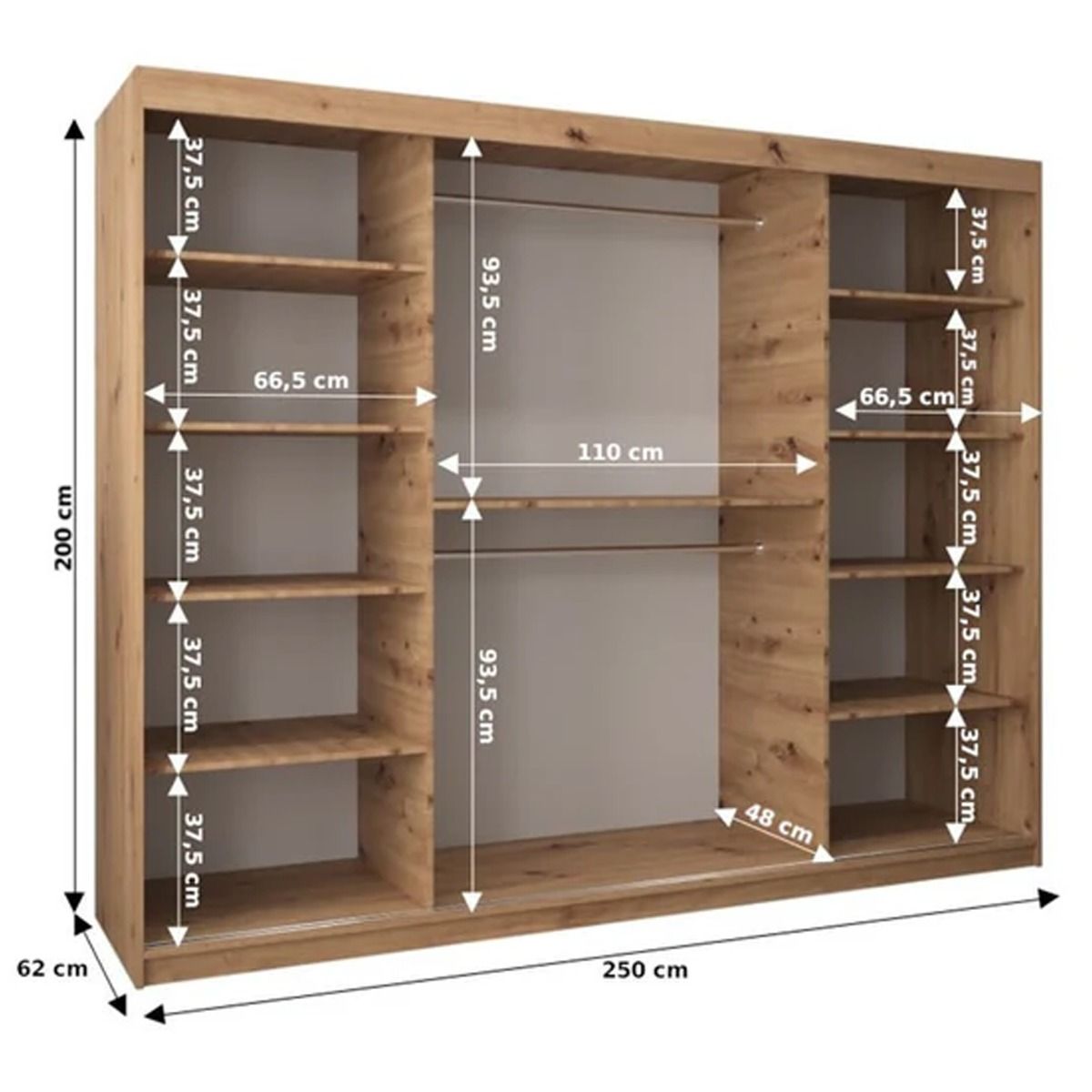 Sliding Wardrobe - VICENZA II 3 Door Mirrored Wardrobe Oak Sonoma 250cm