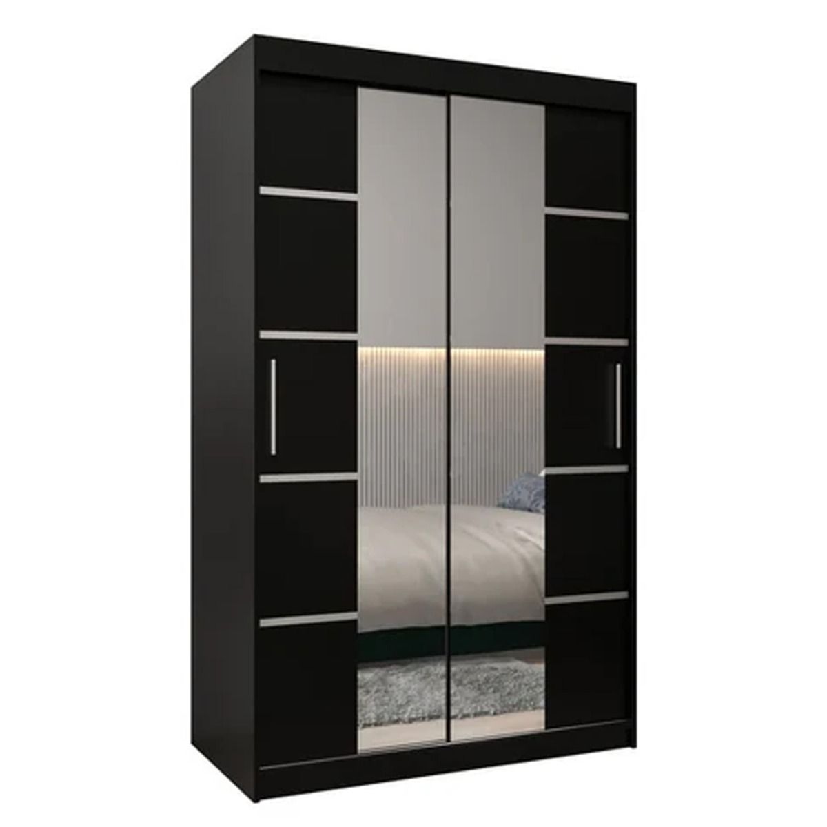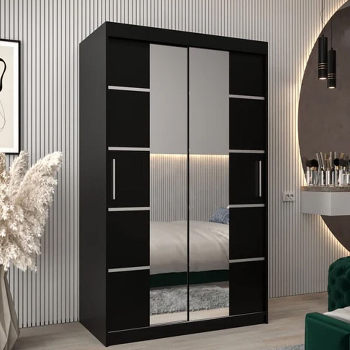 Sliding Wardrobe - VICENZA IV 2 Door Mirrored Wardrobe Black 120cm