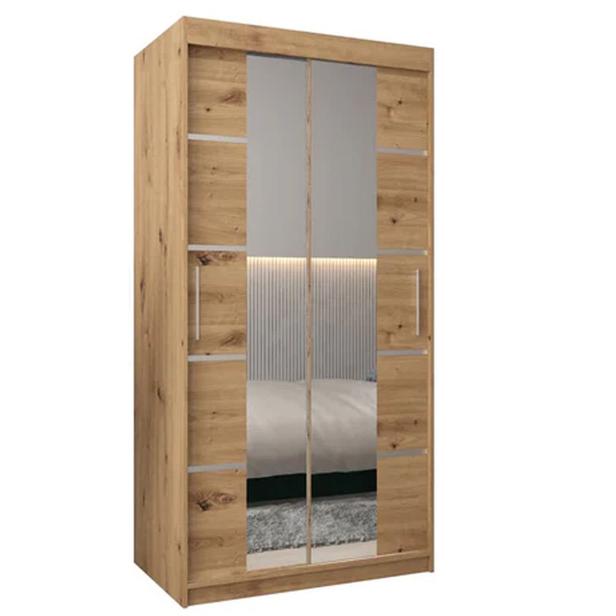 Sliding Wardrobe - VICENZA IV 2 Door Mirrored Wardrobe Oak Artisan 100cm