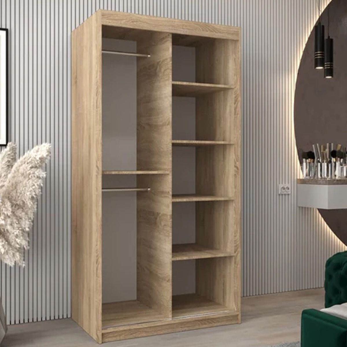 Sliding Wardrobe - VICENZA IV 2 Door Mirrored Wardrobe Oak Sonoma 100cm