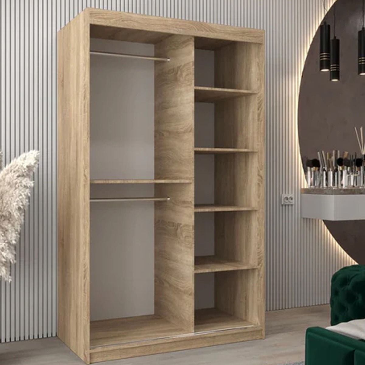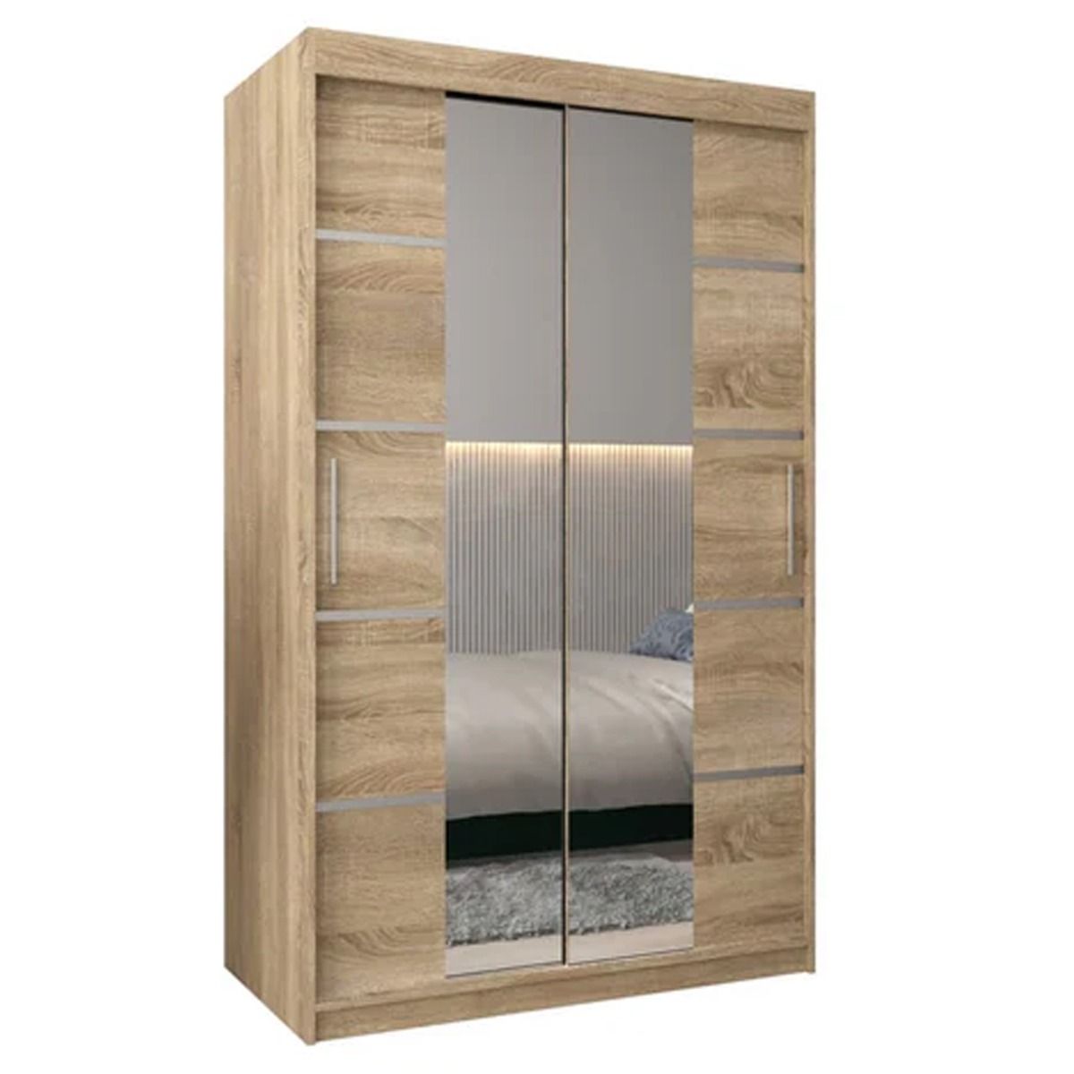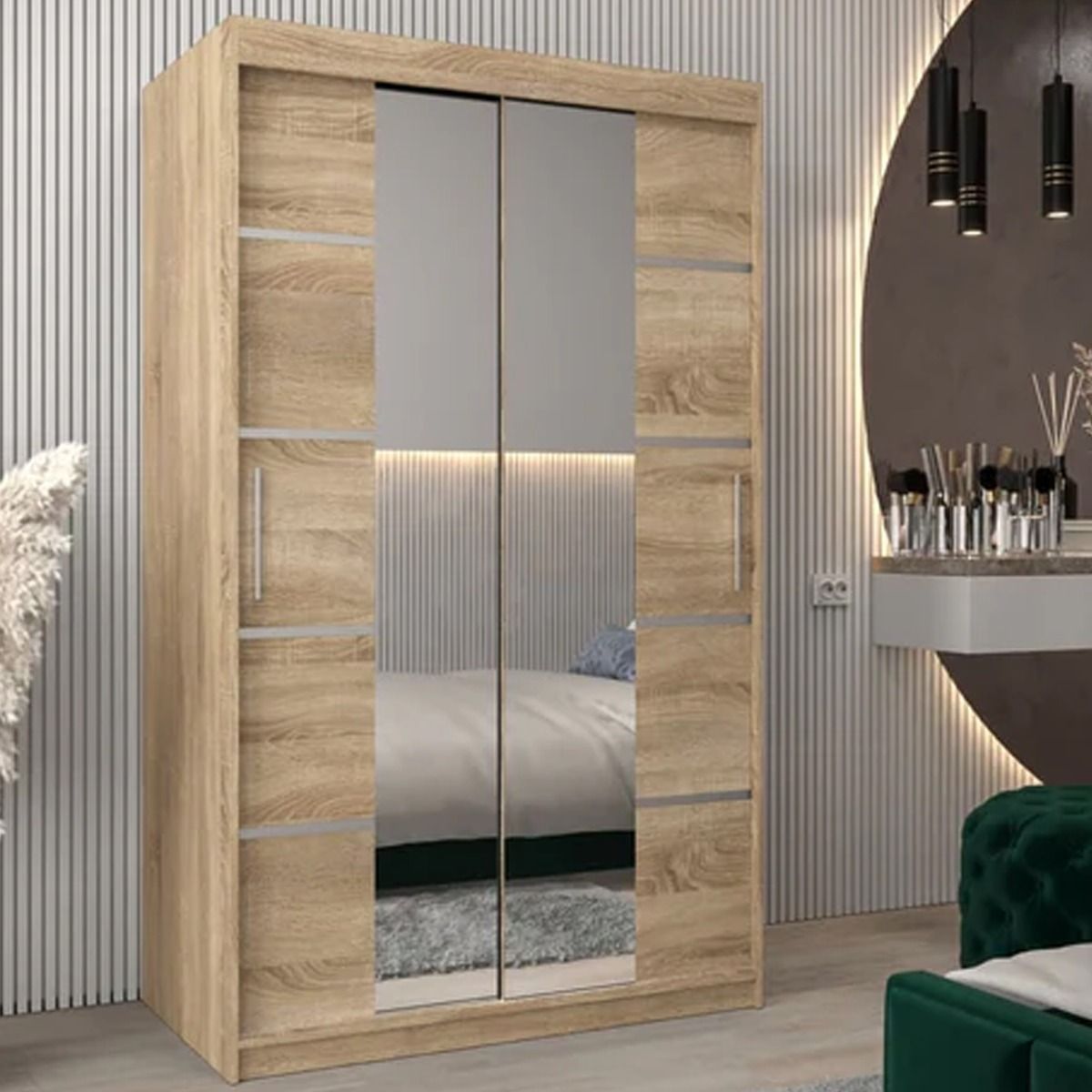 Sliding Wardrobe - VICENZA IV 2 Door Mirrored Wardrobe Oak Sonoma 120cm