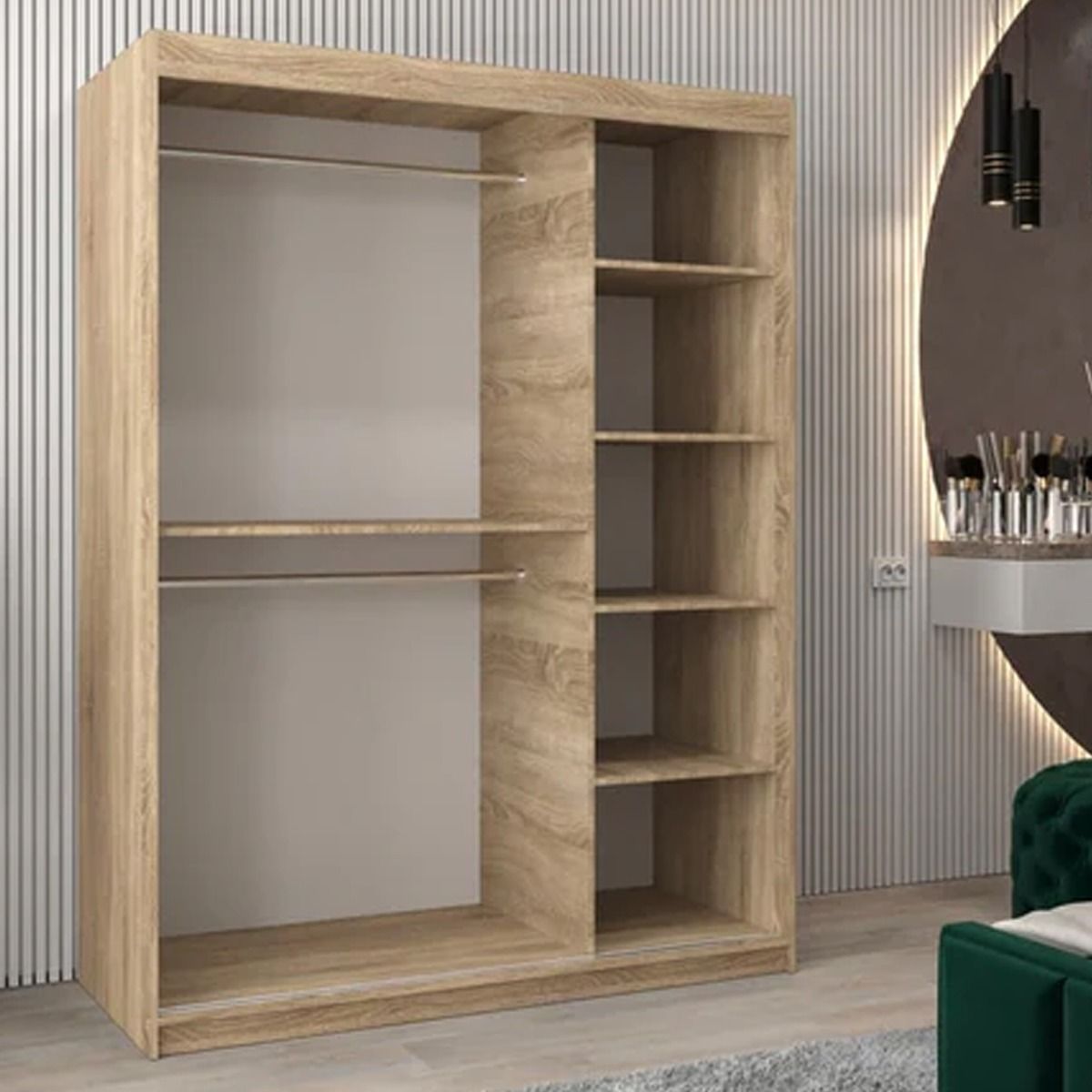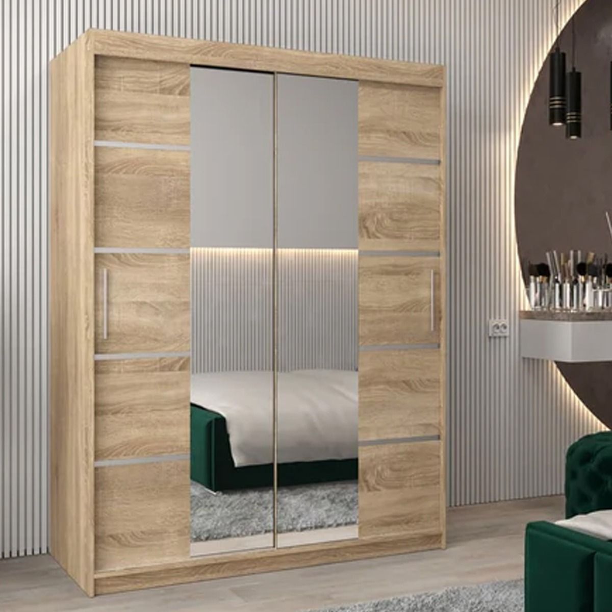 Sliding Wardrobe - VICENZA IV 2 Door Mirrored Wardrobe Oak Sonoma 150cm