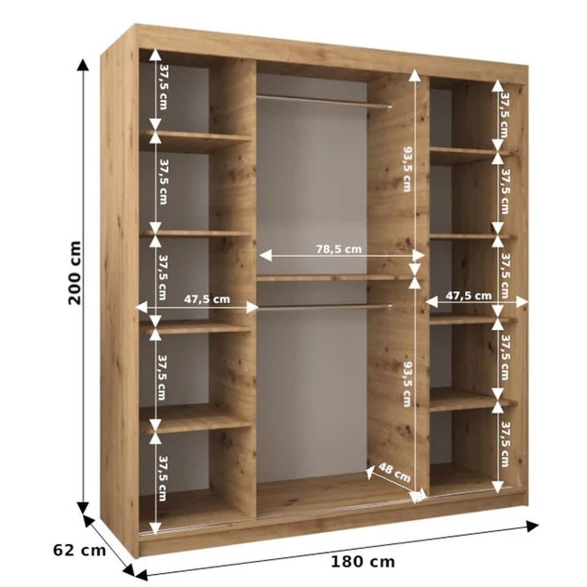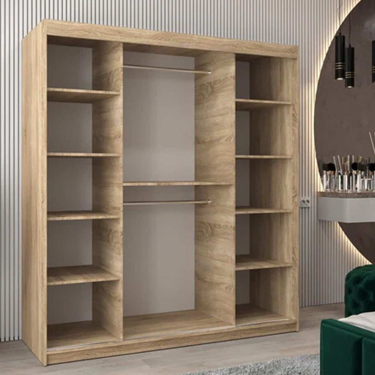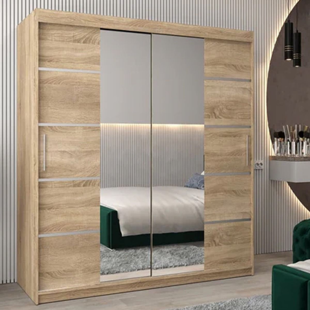 Sliding Wardrobe - VICENZA IV 2 Door Mirrored Wardrobe Oak Sonoma 180cm