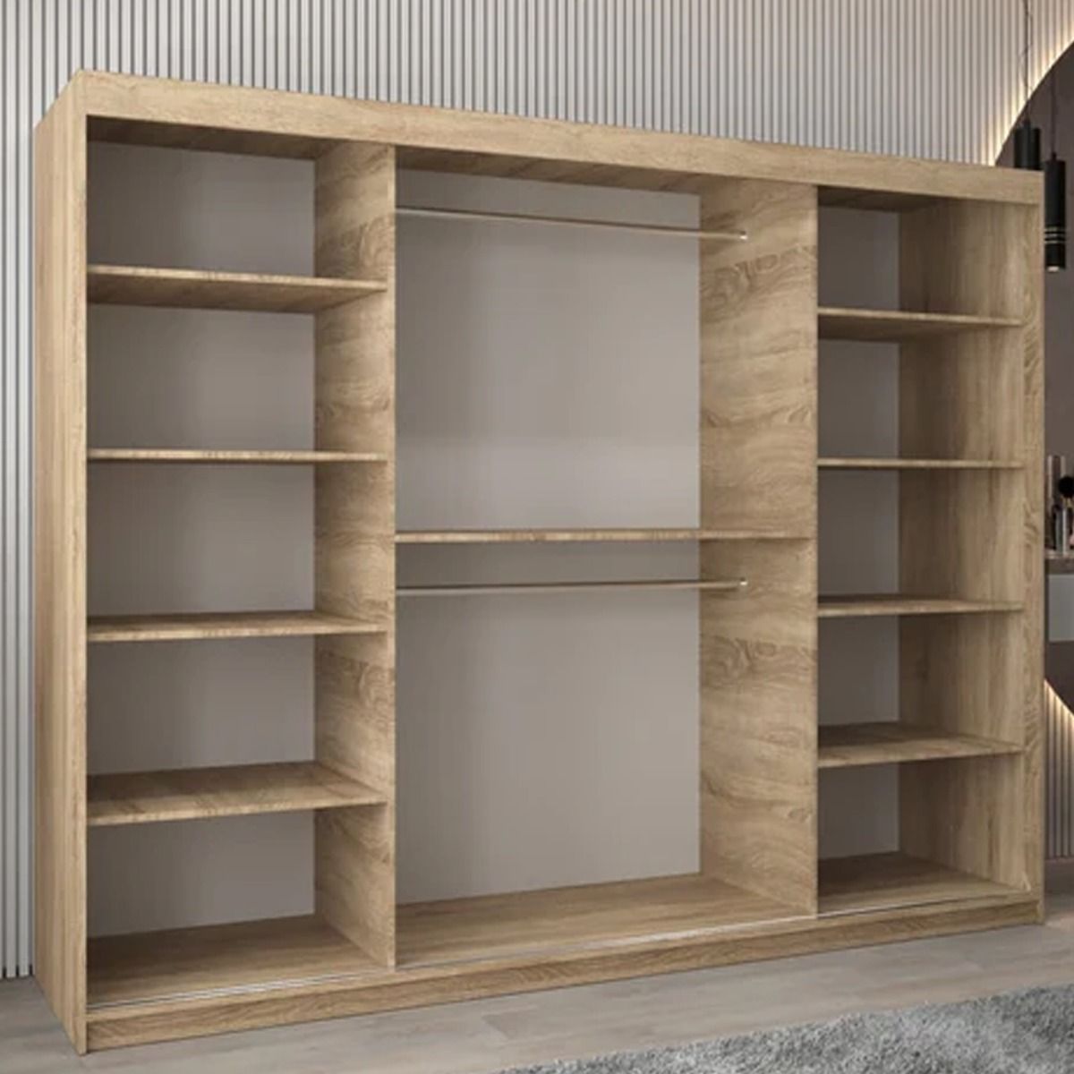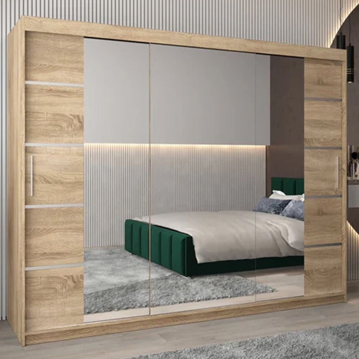 Sliding Wardrobe - VICENZA IV 3 Door Mirrored Wardrobe Oak Sonoma 250cm