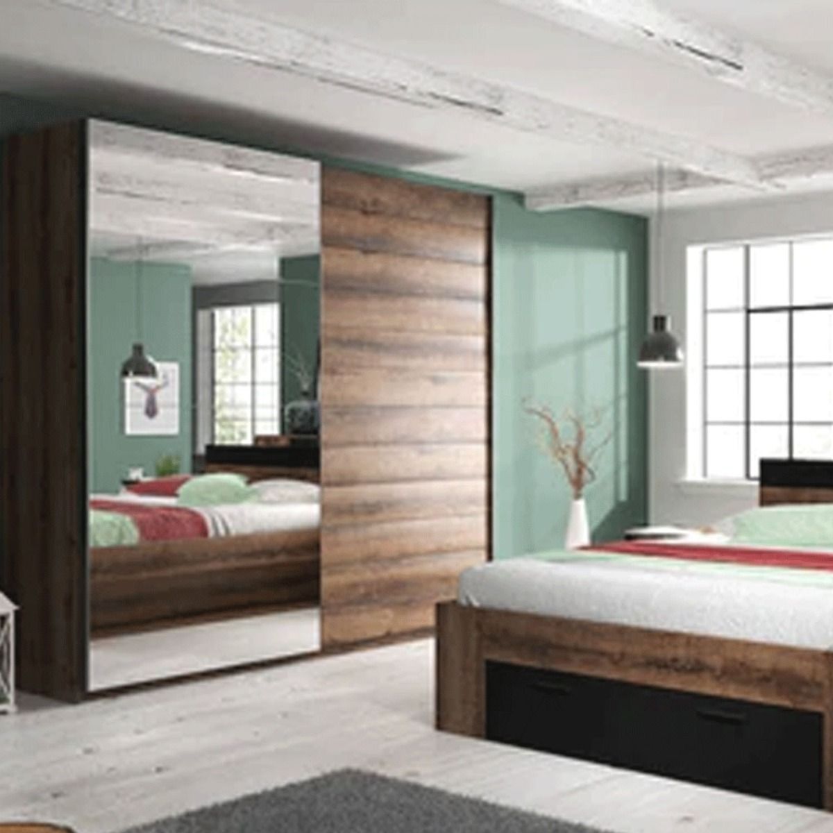 Sliding Wardrobe - VORTEX 2 Door Mirrored Wardrobe Oak 180cm