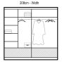 2) For reference, if your wardrobe is 250 cm wide and 215 cm high, please provide us with a floor space of 250 cm x 215 cm, plus 60 cm per measurement. This would then equate to a floor space of 310 cm x 275 cm. This allows the wardrobe to be built on the floor before being lifted up onto its base.