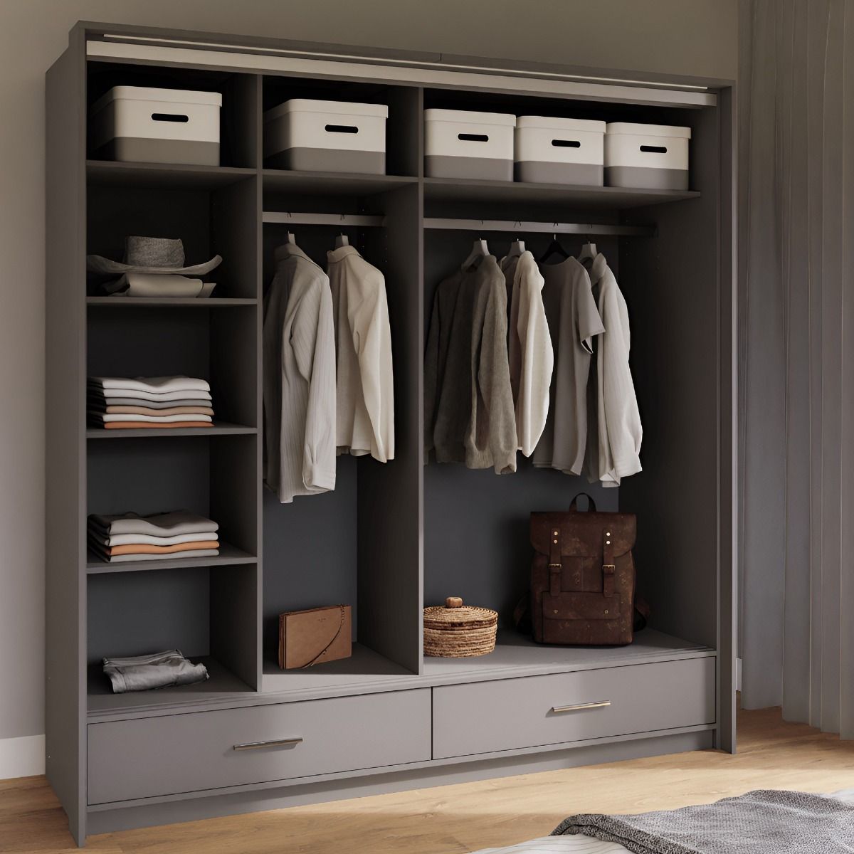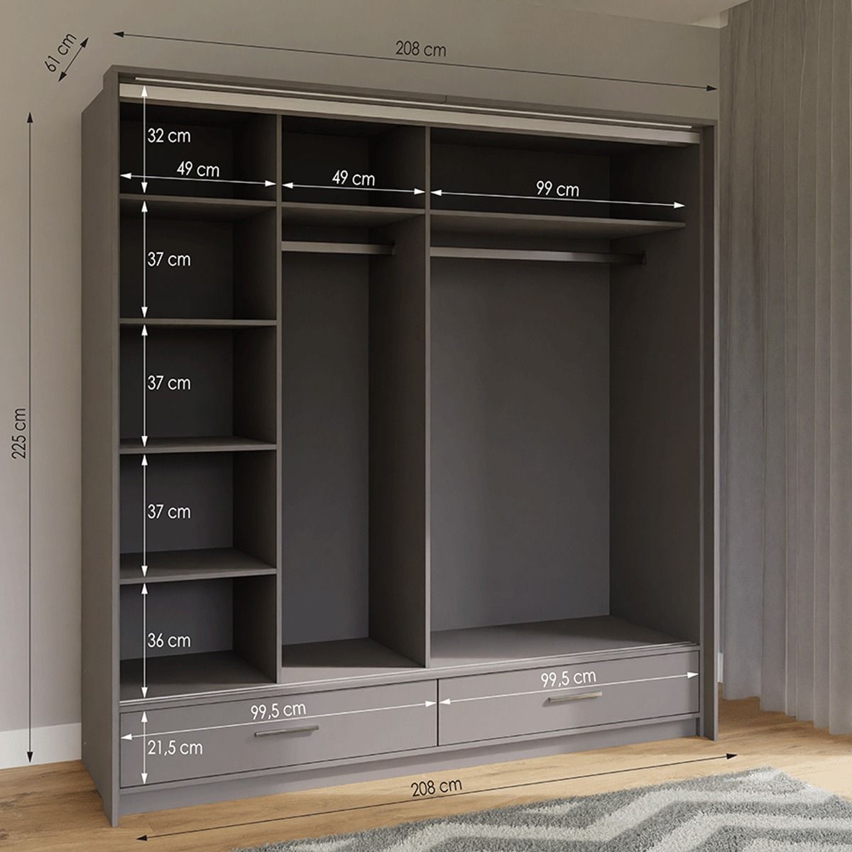 Sliding Wardrobe - WARRINGTON 2 Door Mirrored Wardrobe Graphite 208cm