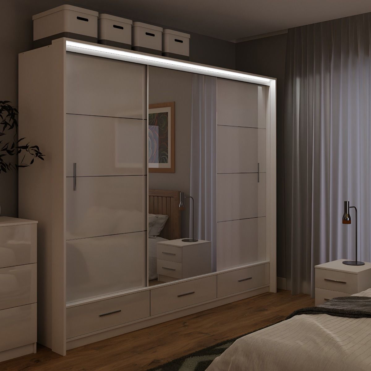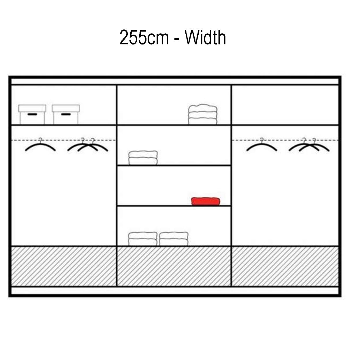 Sliding Wardrobe - WARRINGTON 3 Door Mirrored Wardrobe White 255cm