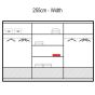 2) For reference, if your wardrobe is 250 cm wide and 215 cm high, please provide us with a floor space of 250 cm x 215 cm, plus 60 cm per measurement. This would then equate to a floor space of 310 cm x 275 cm. This allows the wardrobe to be built on the floor before being lifted up onto its base.