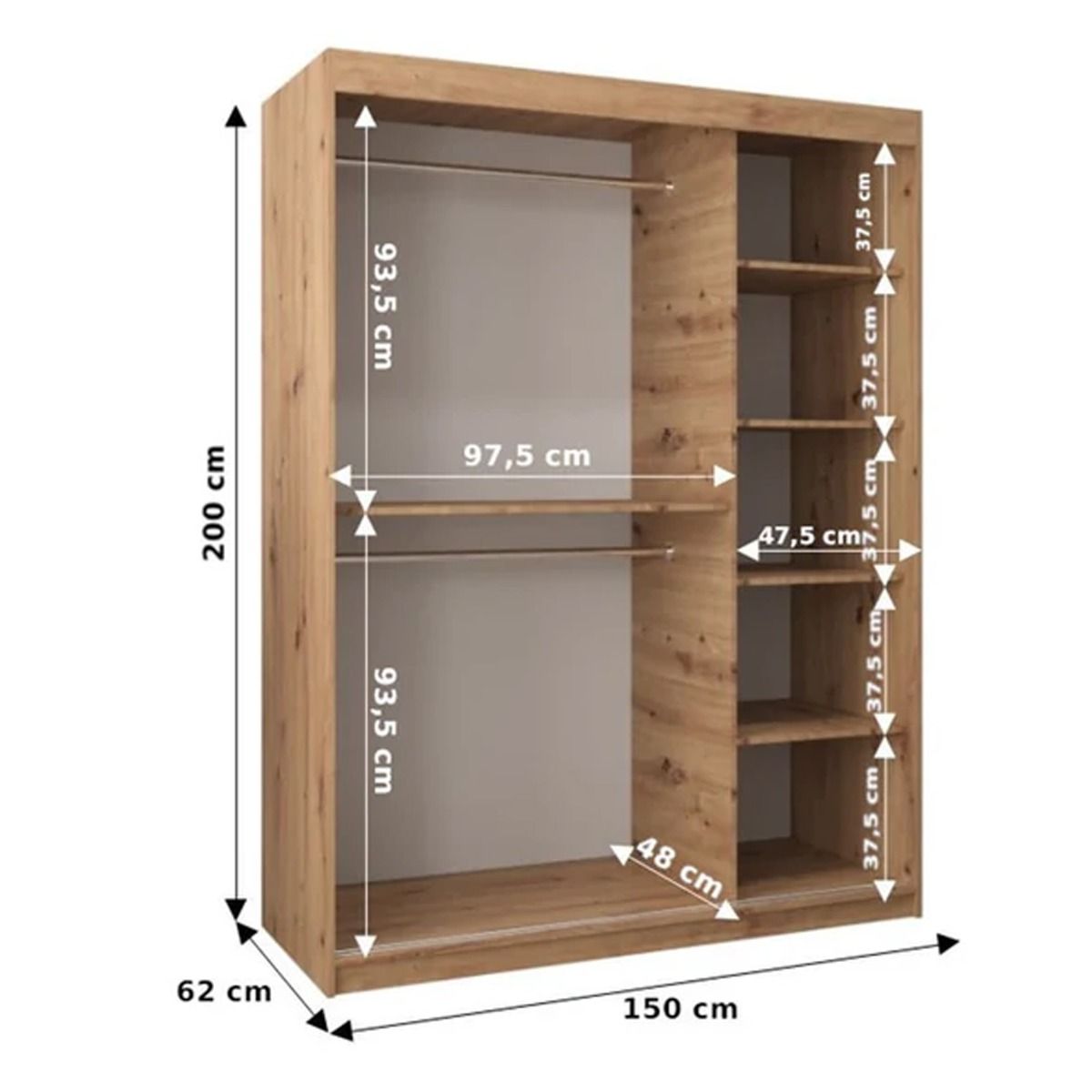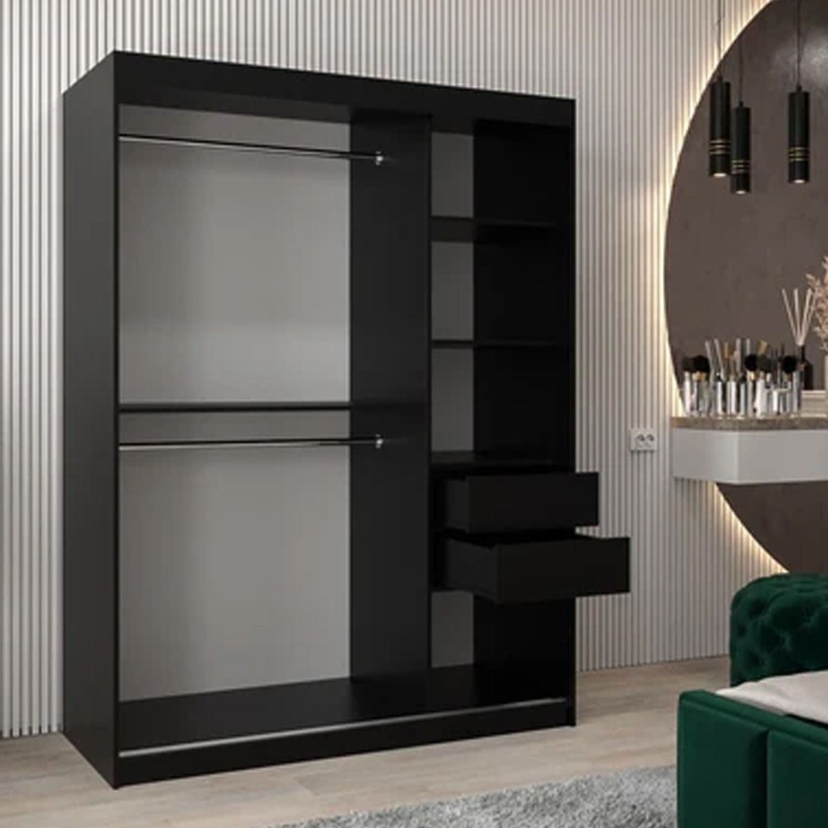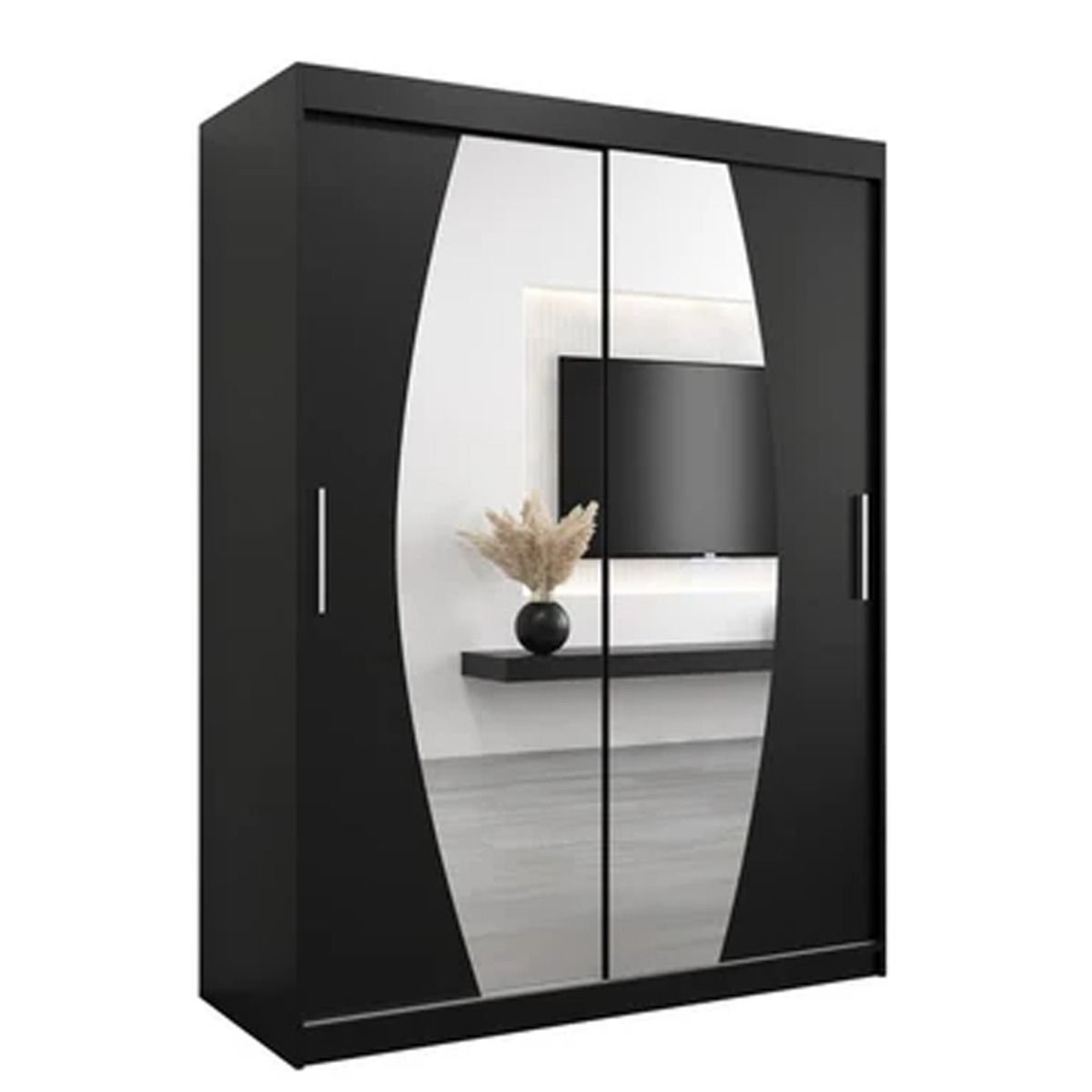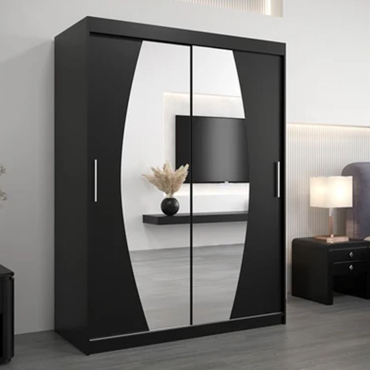 Sliding Wardrobe - WRIGHT 2 Door Mirrored Wardrobe Black 150cm