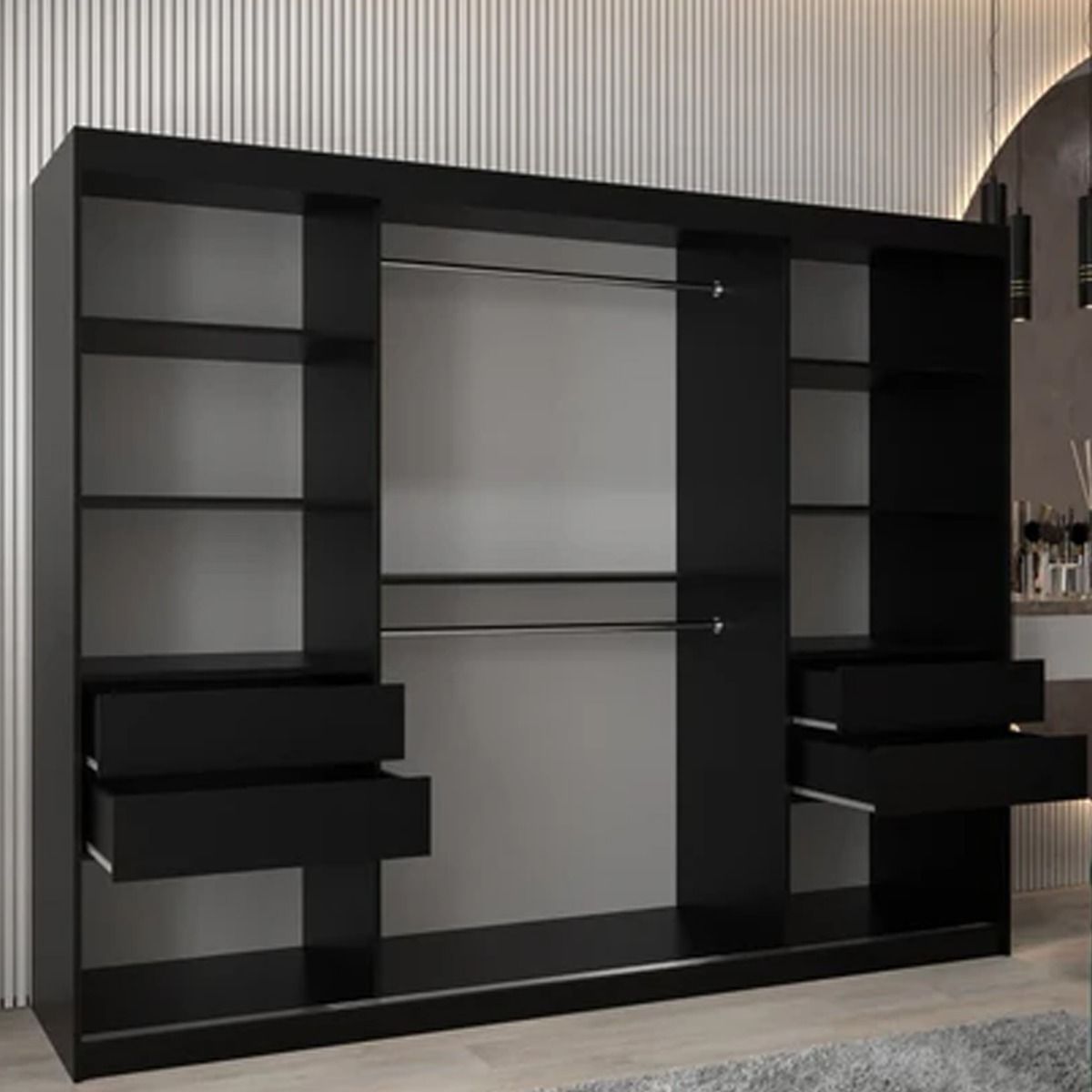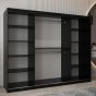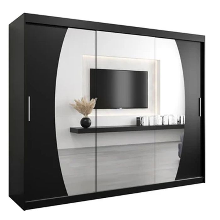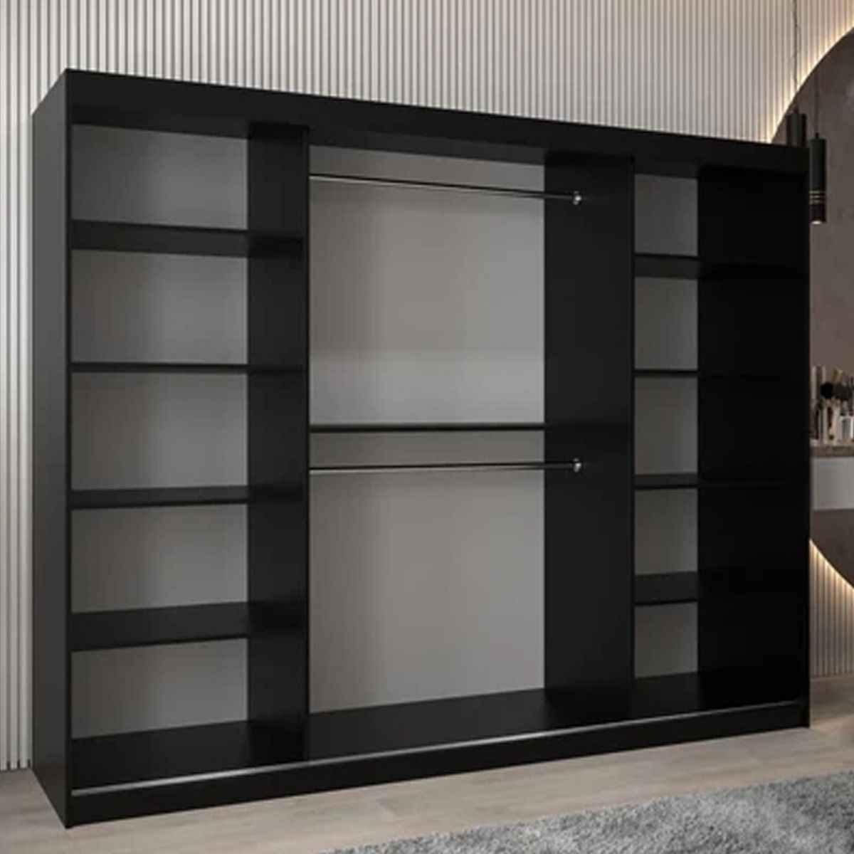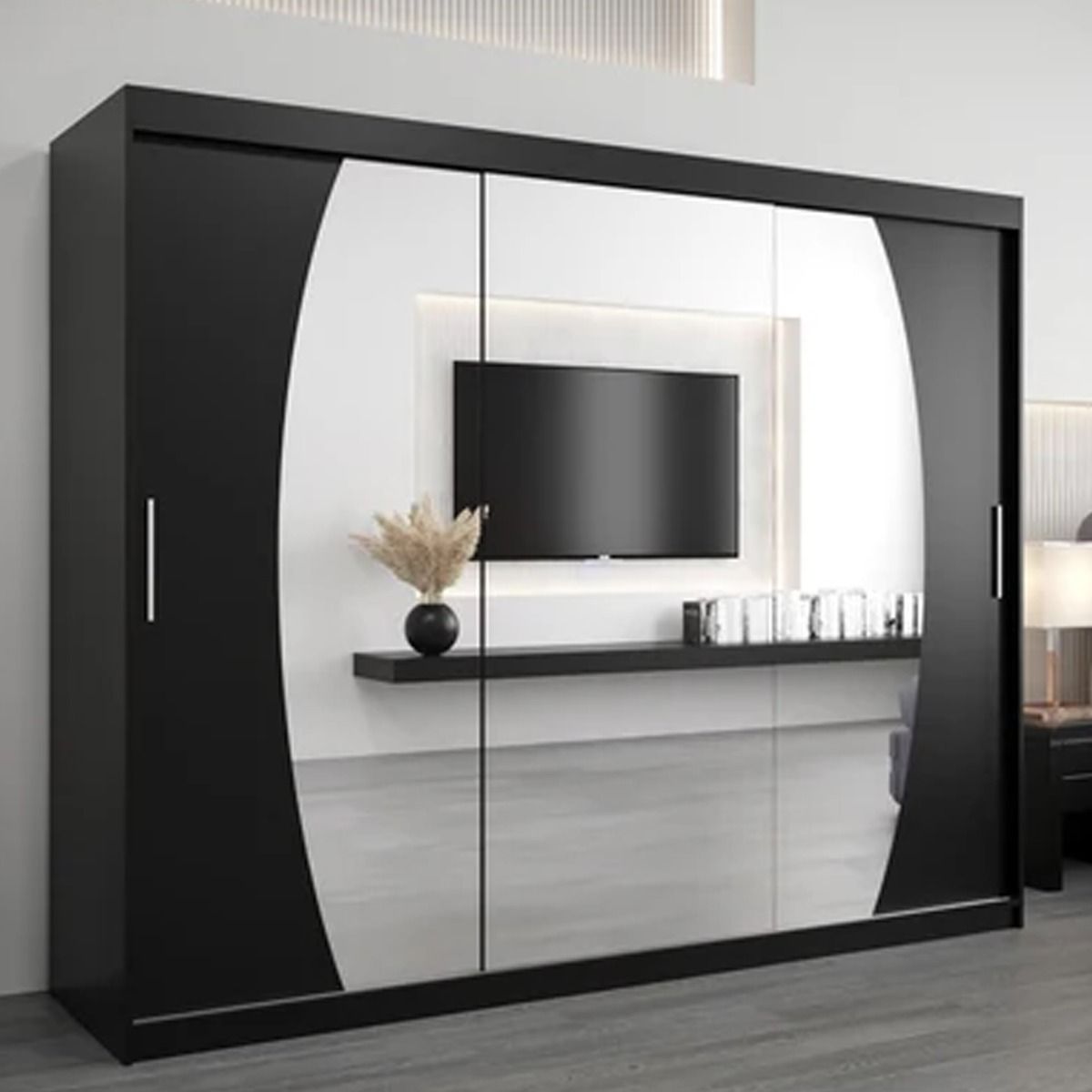 Sliding Wardrobe - WRIGHT 3 Door Mirrored Wardrobe Black 250cm