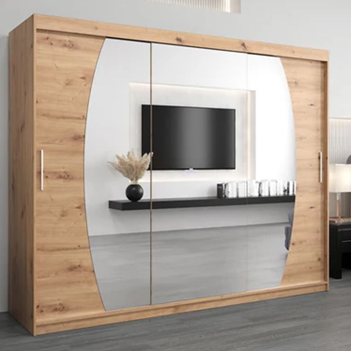 Sliding Wardrobe - WRIGHT 3 Door Mirrored Wardrobe Oak Artisan 250cm