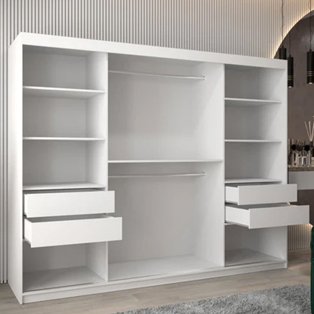 Sliding Wardrobe - WRIGHT 3 Door Mirrored Wardrobe White 250cm