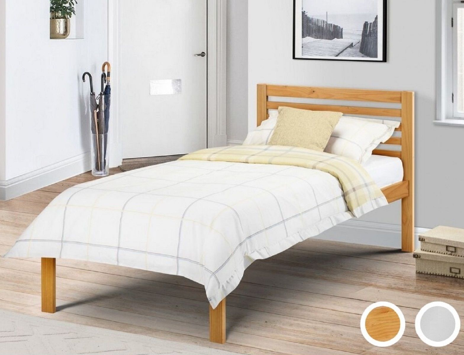 A crisp, modern style bedstead that sits perfectly with either contemporary or traditional décor and is the perfect addition to any children's bedroom or guest room. The Slocum bed features a slatted base for extra comfort and prolonged mattress life and represents exceptional value for money, conveniently delivered in just one carton.