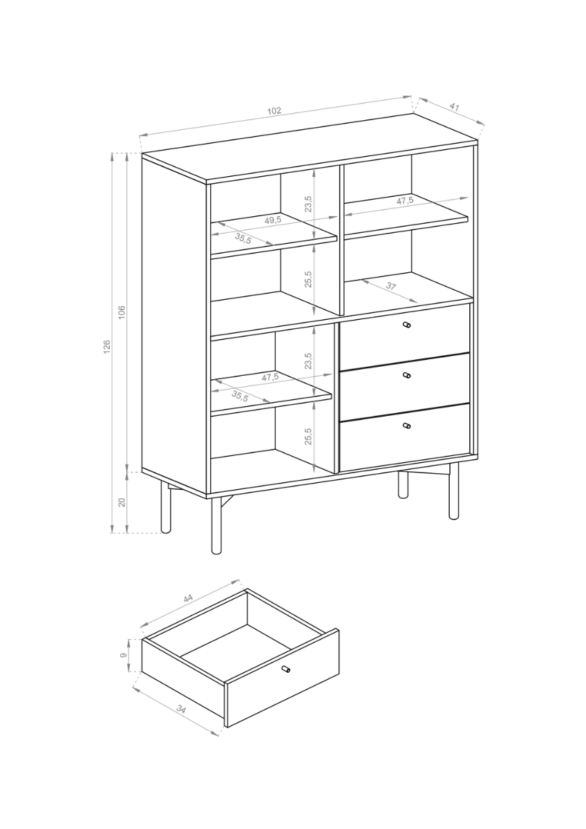 Slough Dresser in artisan oak. Large dresser with lots of storage space and additional section of shelves. Slough Dresser unit is the perfect blend of Scandi chic and cosy living. Black and oak mix provides a modern touch to the design making it a perfect addition to your home. The Black cross brace leg frame gives the Flow unit a contemporary and unique look whilst giving support and strength to the base. The row of drawers provides further storage for all your valuables.