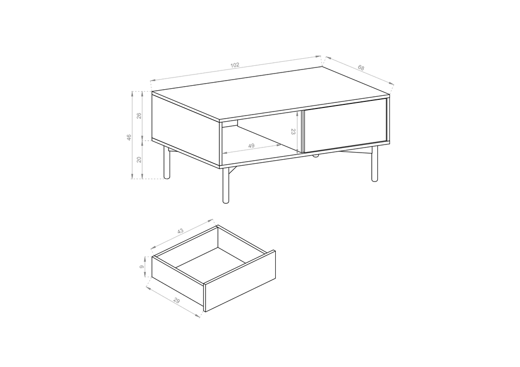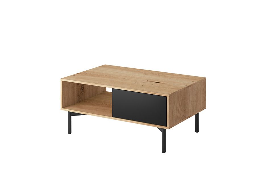 Slough Coffee Table in artisan oak. A stunning low level centre piece for your living room. Additional storage space with TAP-TO-OPEN system. Slough Dresser unit is the perfect blend of Scandi chic and cosy living. Black and oak mix provides a modern touch to the design making it a perfect addition to your home. The Black cross brace leg frame gives the Slough unit a contemporary and unique look whilst giving support and strength to the base.