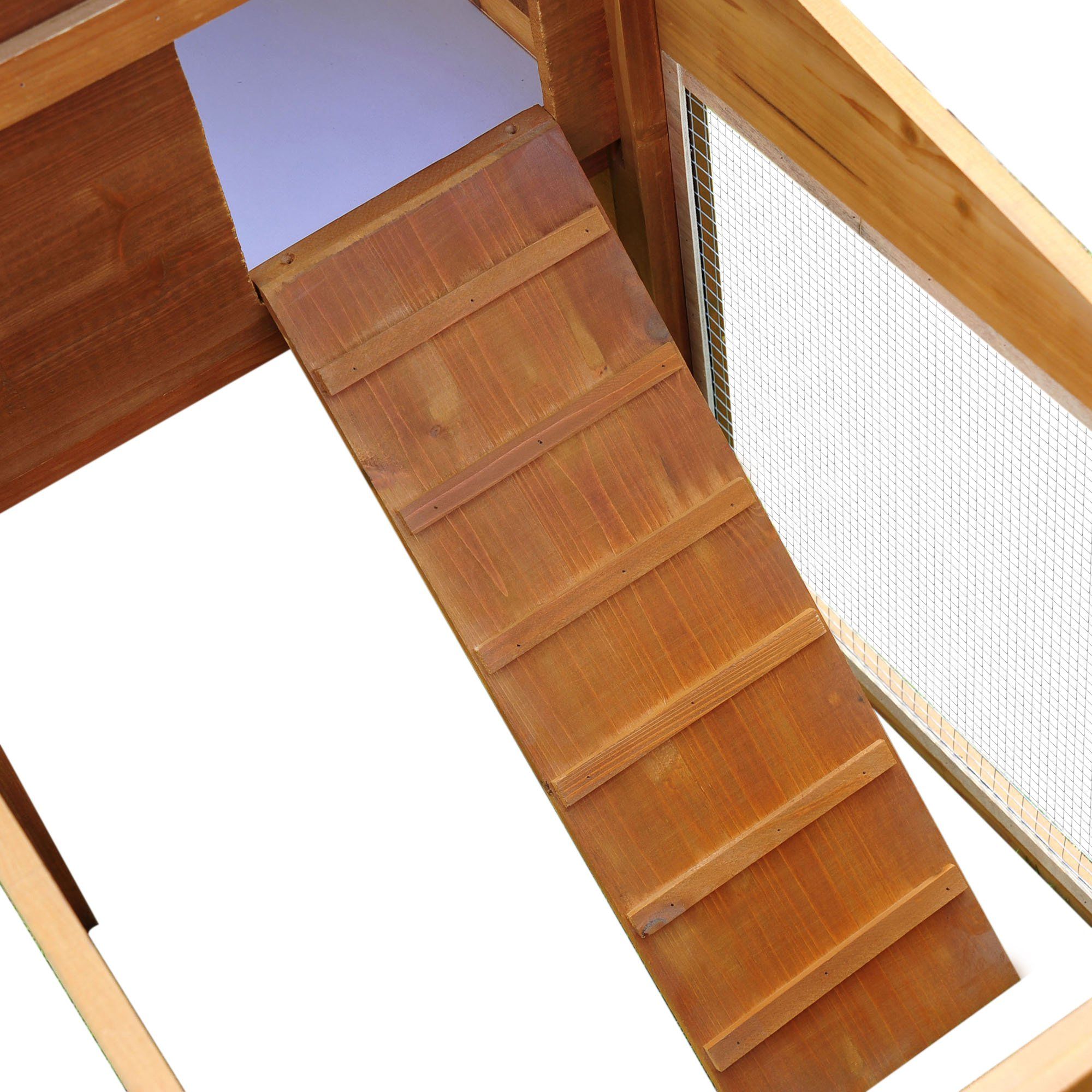 - Solid fir wood crafted into a deluxe two-tier design, made of a top house and a large bottom run area