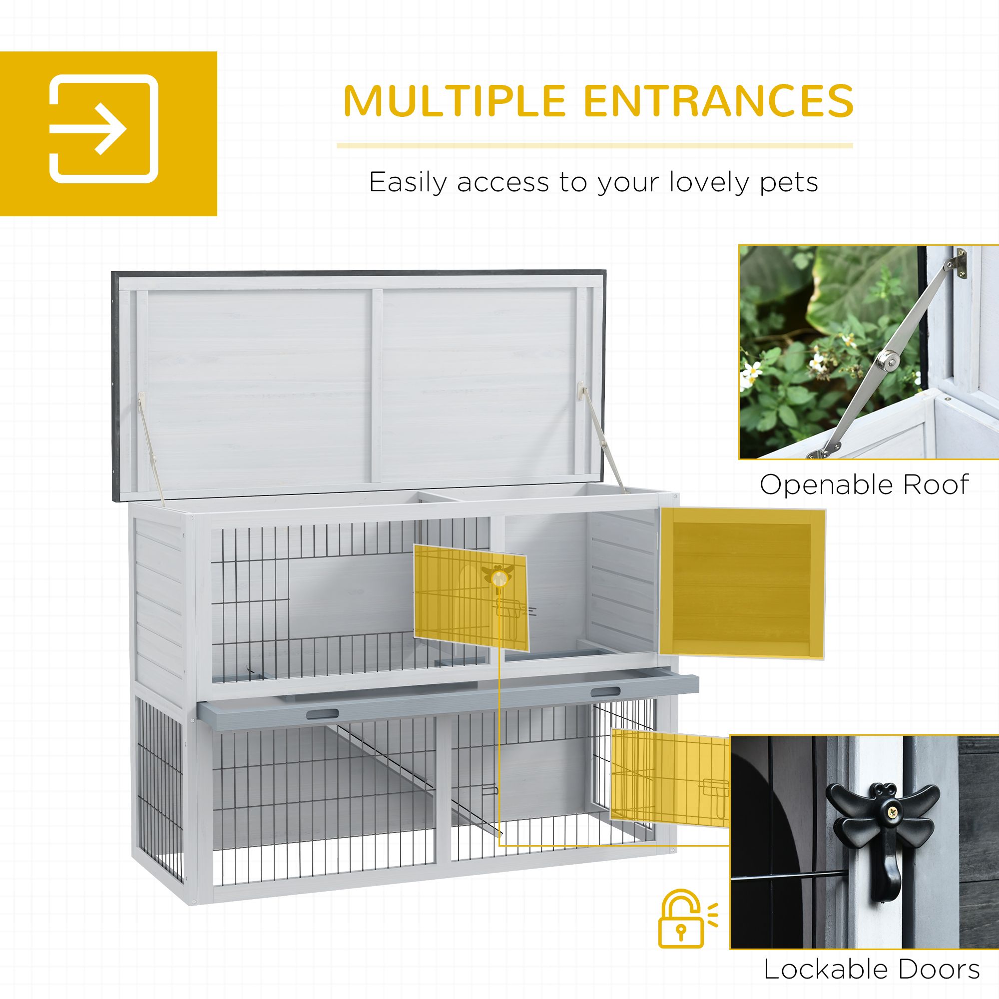 - TWO-TIER DESIGN: Consisting of a top living area, a concealed room with accessible door and a large run area for them to get some fresh air.