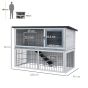 Small Animal Two-Level Fir Wood Hutch w/ Slide Out Tray Grey