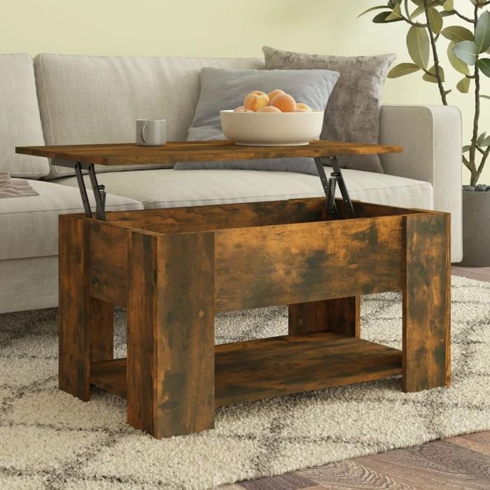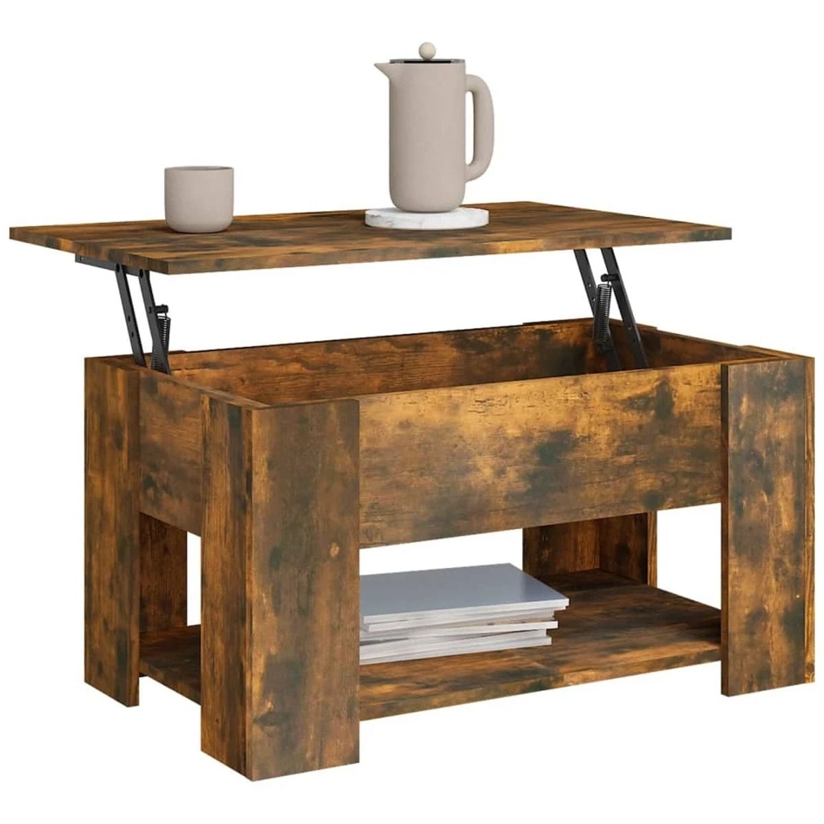 Smoked Oak Coffee Table with Hidden Storage and Lift Top Design