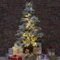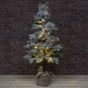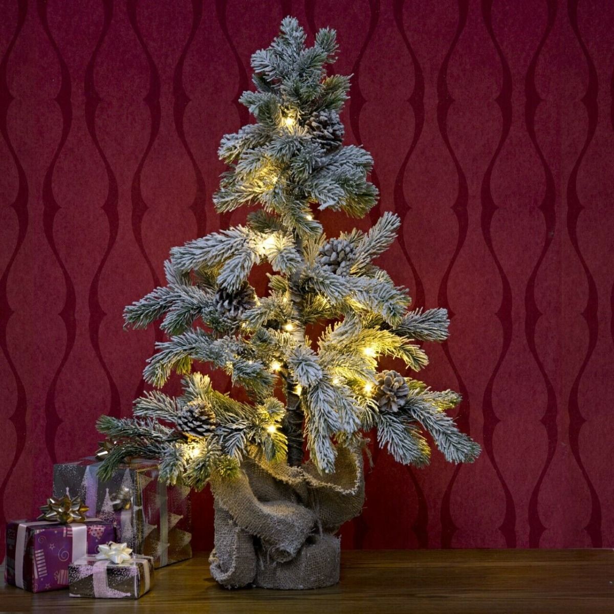 Lovely looking pre-lit novelty christmas tree with frosted tips, pine cones. Approx height is 75cm or 140cm. 30 leds on the 75cm or 50 leds on the 140cm tree. warm white led lights fitted on the branches. Requires 3 aa batteries (not included).