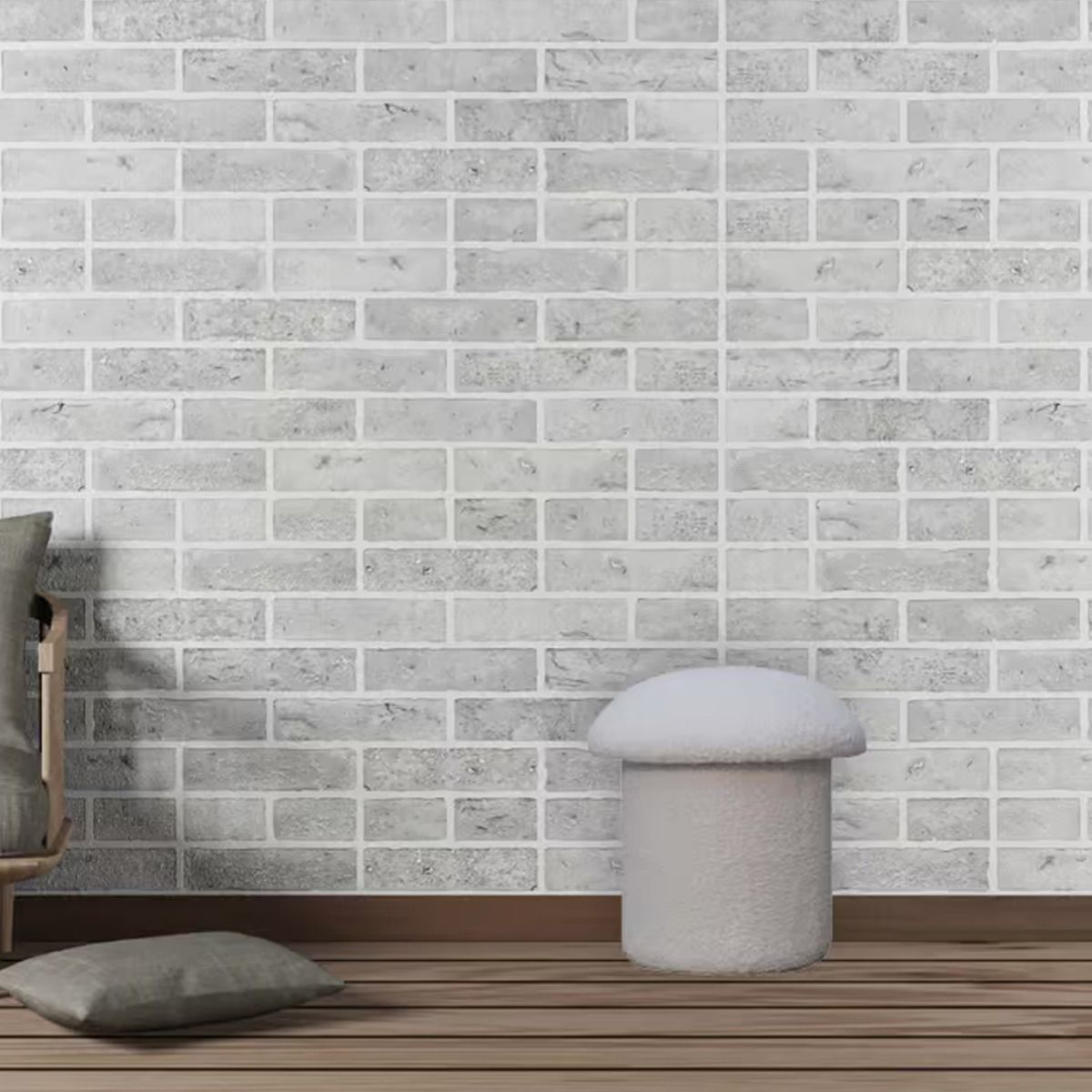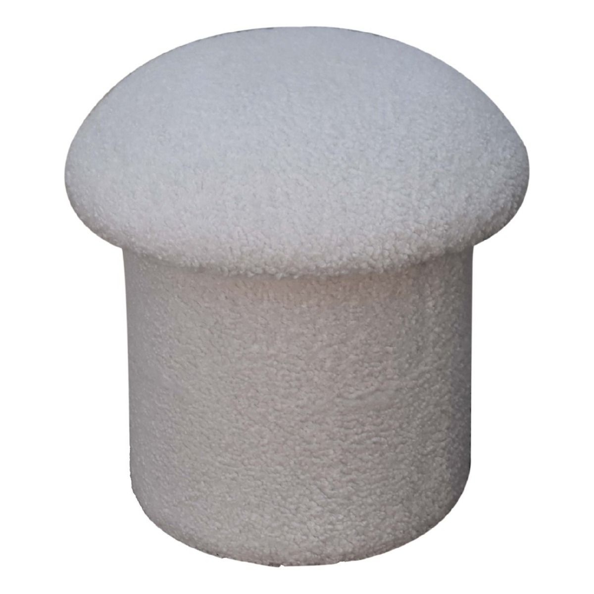 Snow White Boucle Upholstered Mushroom Stool with Sturdy Base