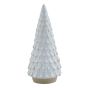 This enchanting ceramic decoration embodies winter's serene beauty with its pristine white finish and intricate spruce silhouette. Each delicate branch captures the ethereal essence of a snow-dusted forest, creating an atmospheric focal point for seasonal displays. The meticulous detailing and dimensional design offer depth and visual interest from every angle, making it an irresistible addition to any retailer's holiday collection. This piece coordinates seamlessly with our white ceramic star decorations and pine cone trinket dishes to create cohesive merchandising opportunities. The clean, contemporary interpretation of traditional holiday motifs appeals to design-conscious consumers while maintaining broad commercial appeal. For maximum visual impact, we recommend pairing with our ceramic standing star decorations in varying sizes, the LED-illuminated cut-out tree, and the understated charm of our white ceramic star dish. The natural hand-turned wooden tree baubles provide an organic accent that enhances the winter woodland aesthetic.
