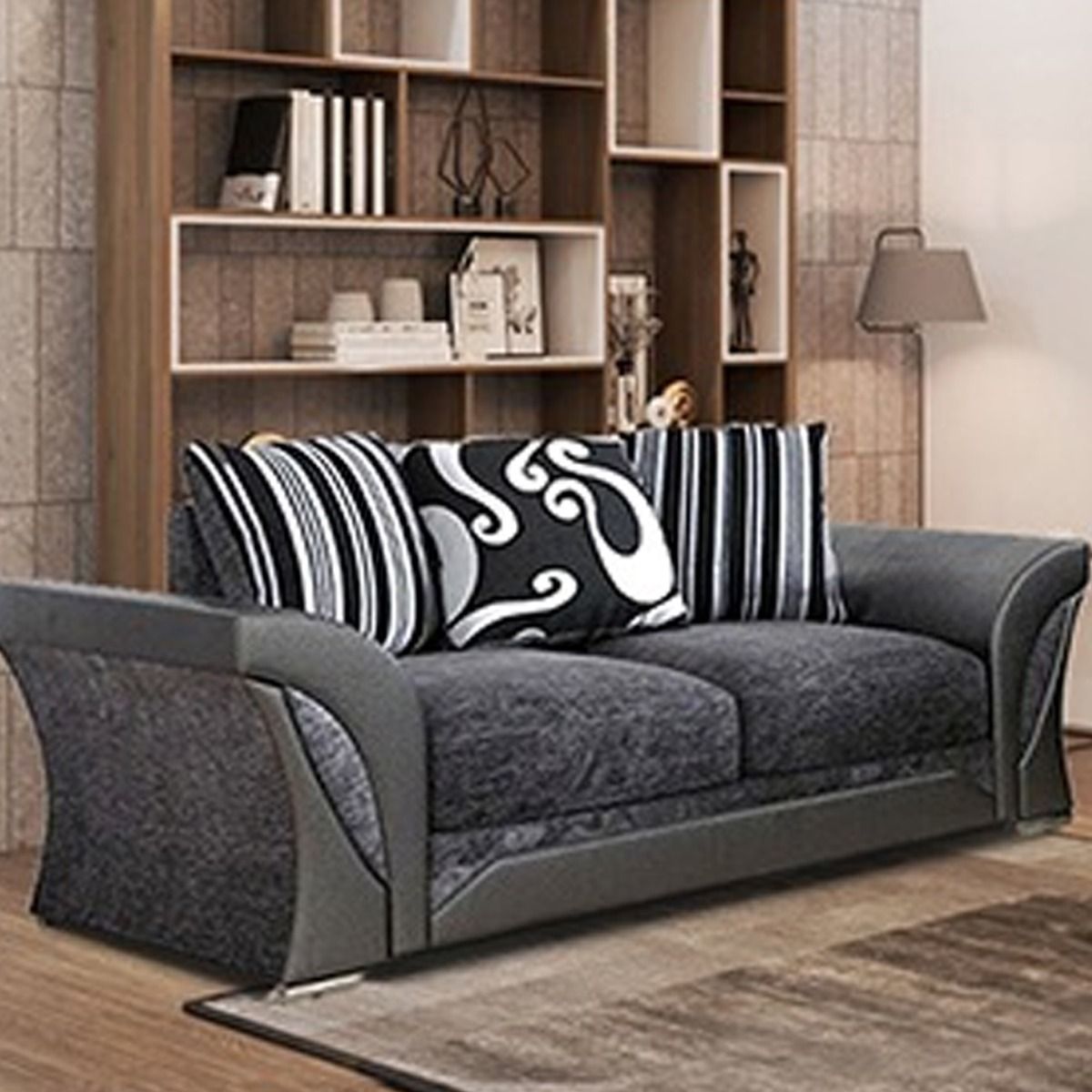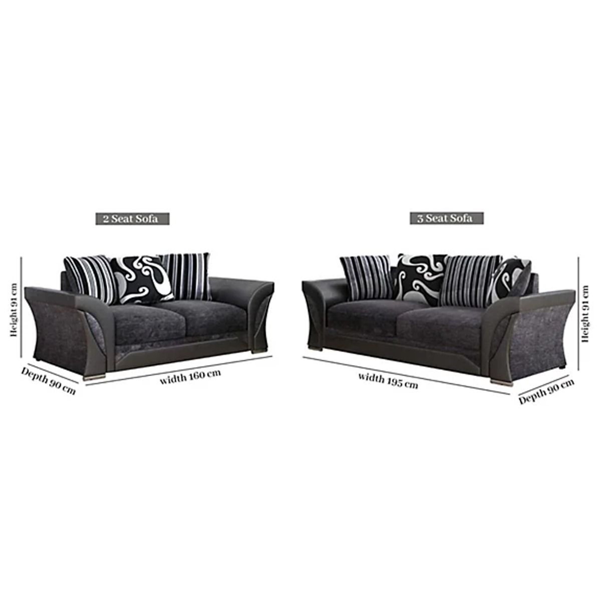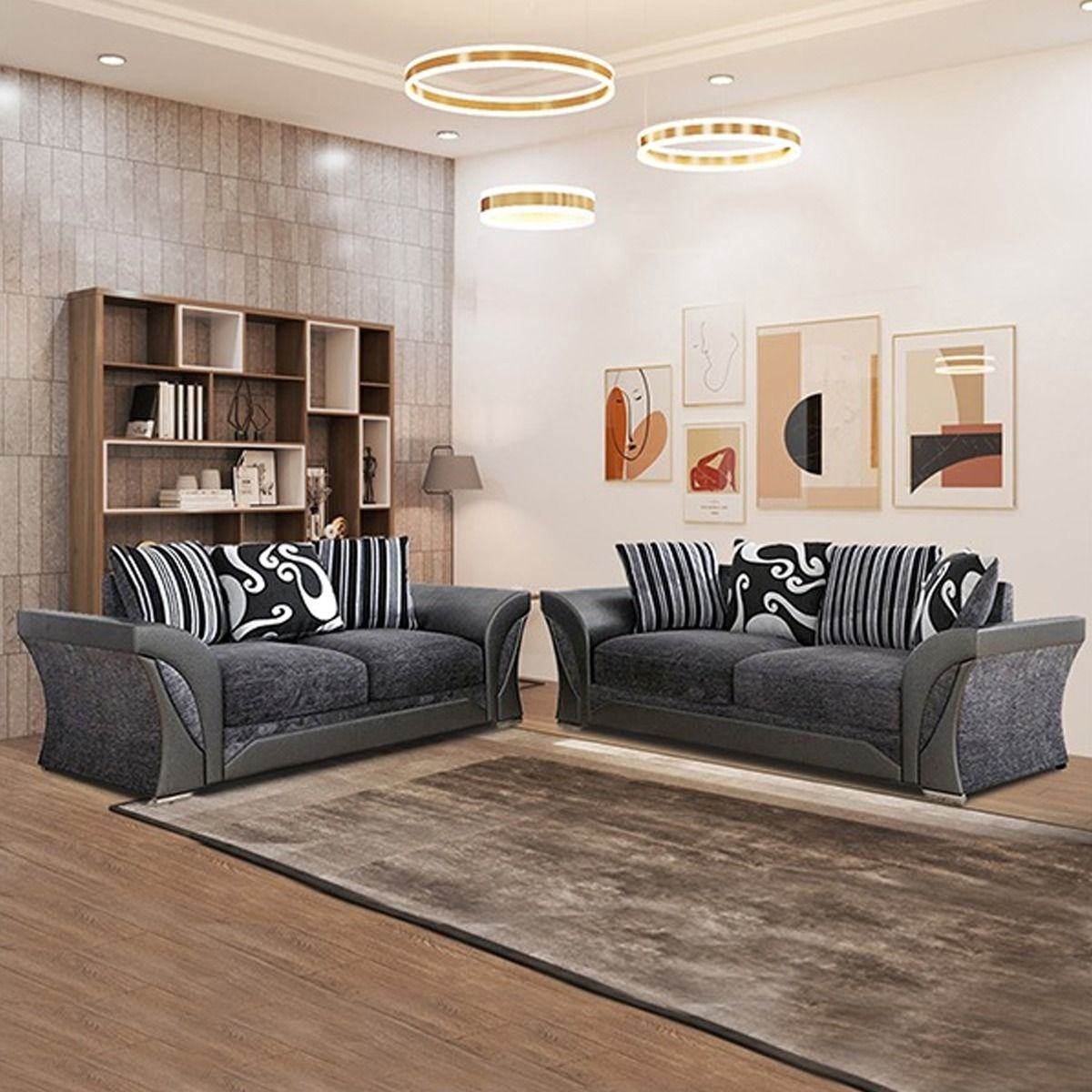 Sofa Set - PARAGUE Chenille Fabric 3 Seater and 2 Seater Sofa - Black and Grey
