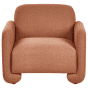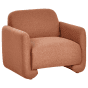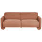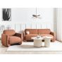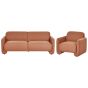This stylish living room furniture set includes a 3-seater sofa and an armchair, combining functionality and comfort. Featuring a wide backrest and comfortable armrests, this furniture set offers a great relaxation experience and a perfect spot to accommodate your guests. Upholstered in a soft, high-quality fabric in a warm golden brown colour, this set's simple, curved design adds a touch of elegance to any retro-inspired interior.