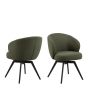 SOIL Round Dining Table in Oak and Black Included 4 Dining Chair with Armrest and Swivel Function in Green