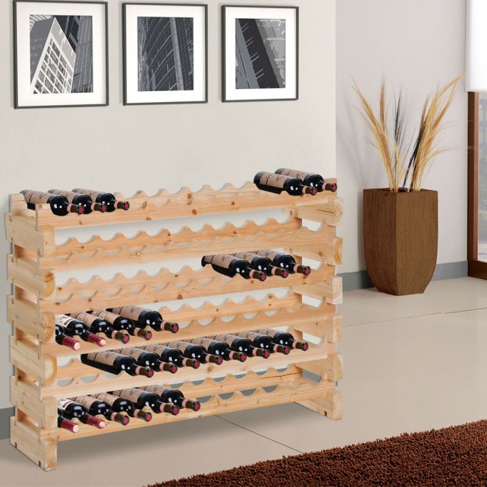 Solid Pine Wood 6 Stackable Tier Design 72 Wine Bottle Rack - Natural Wood