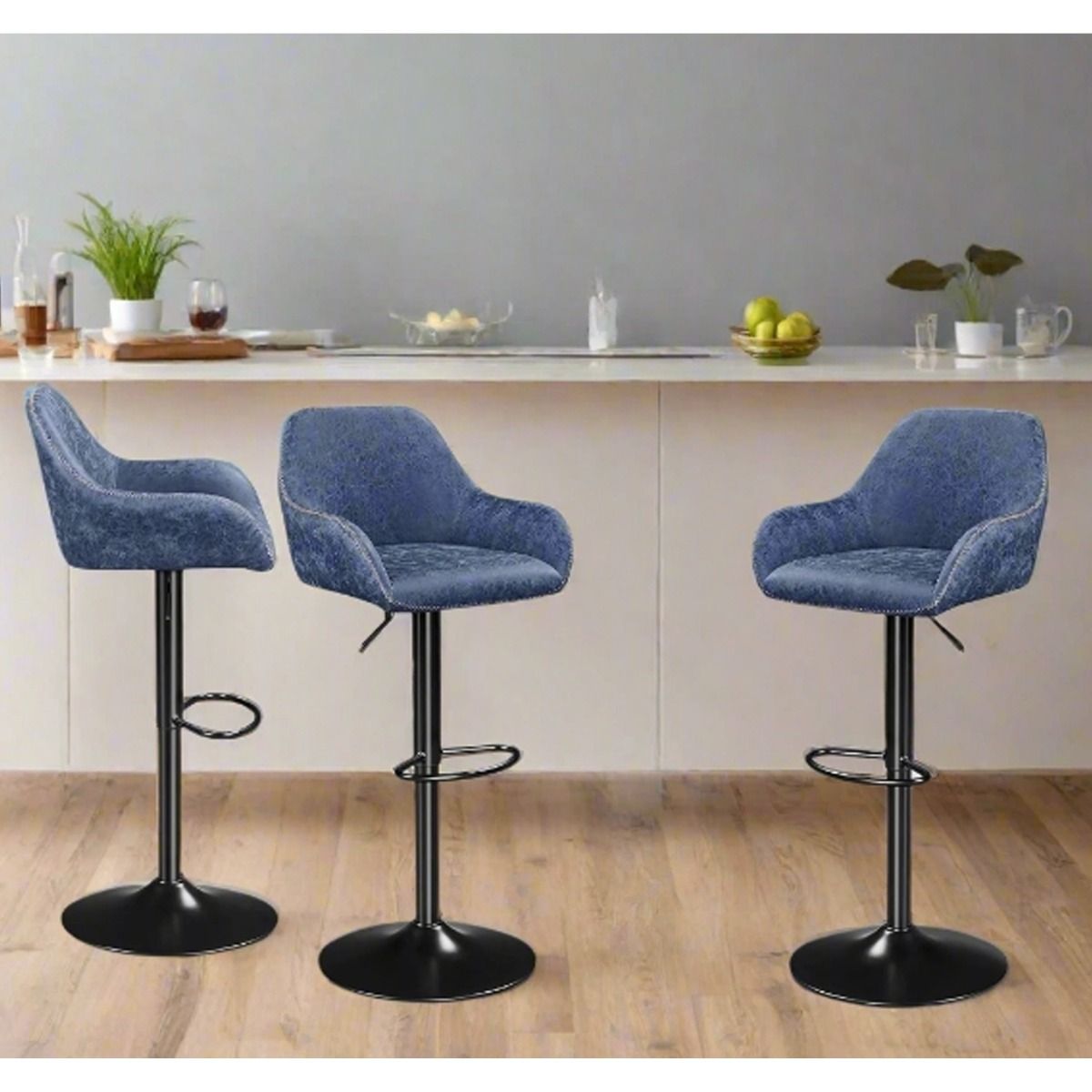 SOLIVERN Bar Stools Set of 2 Adjustable Swivel Chairs with Armrests Faux Leather - Blue