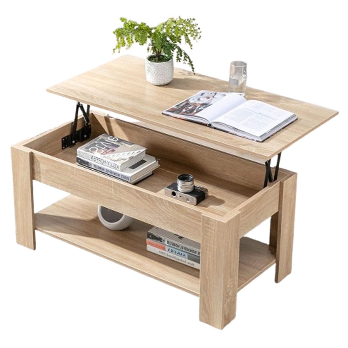 SOLIVERN Coffee Table Lift-Up Wooden Table with Hidden Storage - Rustic Brown