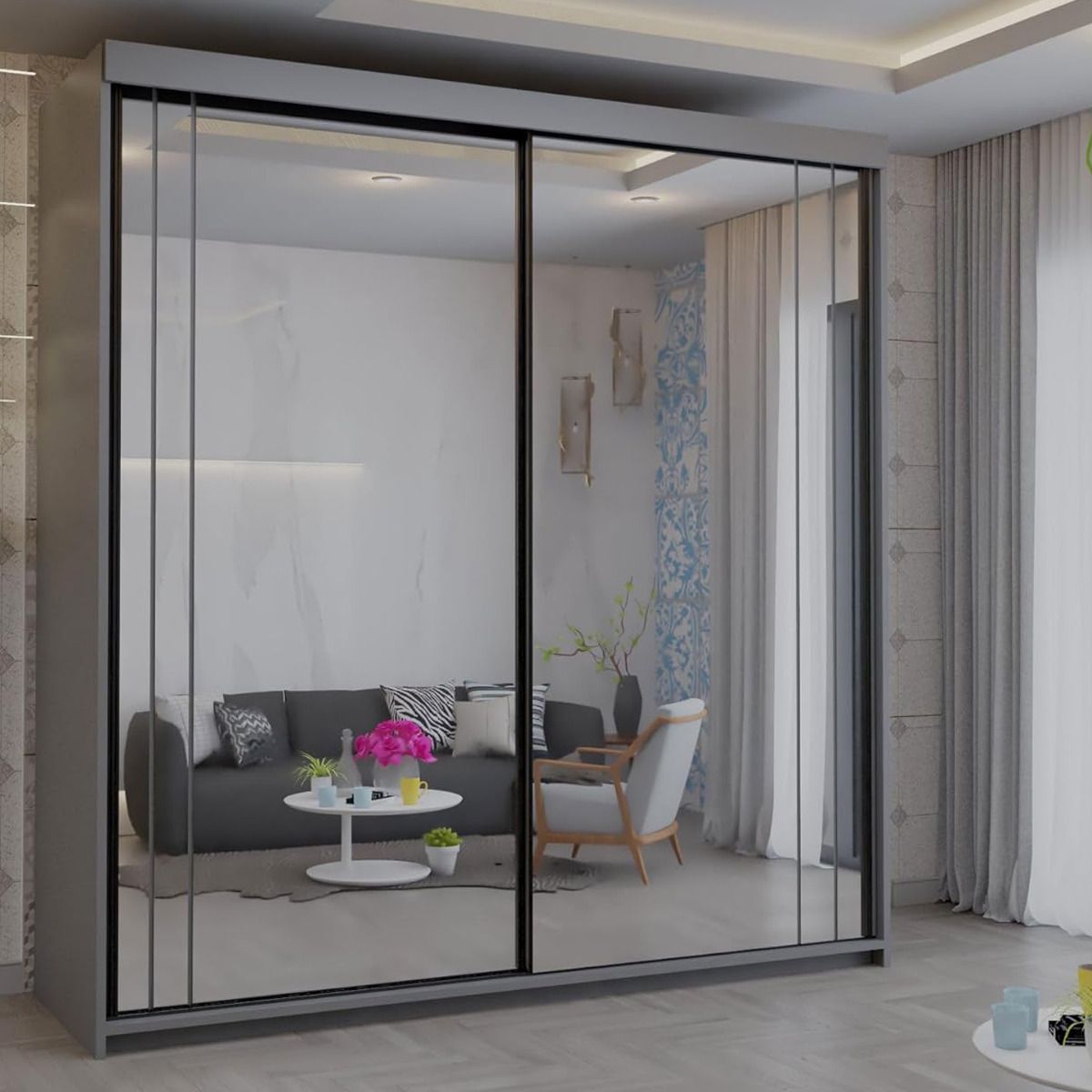 You're reviewing:SOLVIA 2 Door Mirrored Sliding Wardrobe Grey - 150cm