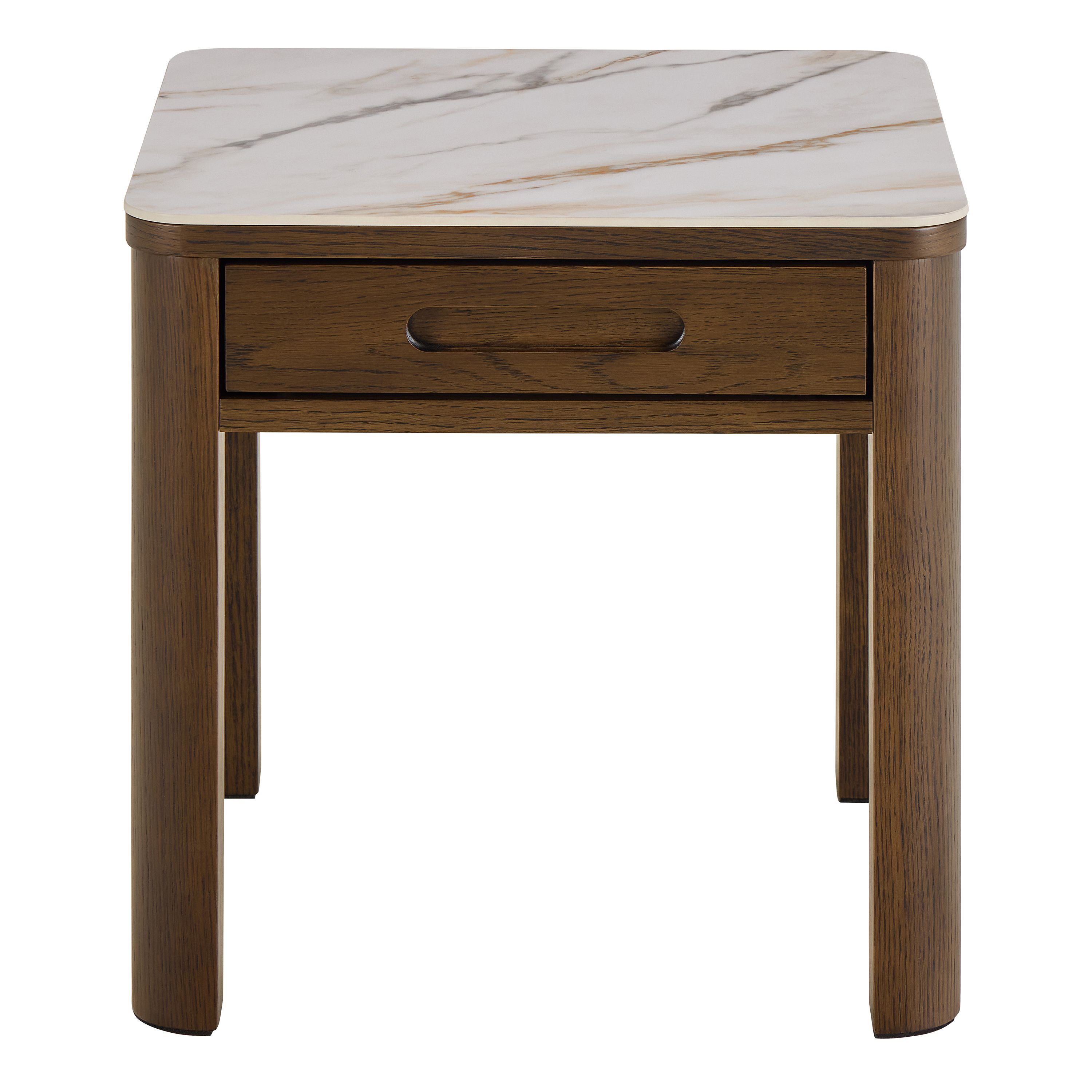 SOUTHA Square Side Table 1 Drawer in Cream Ceramic