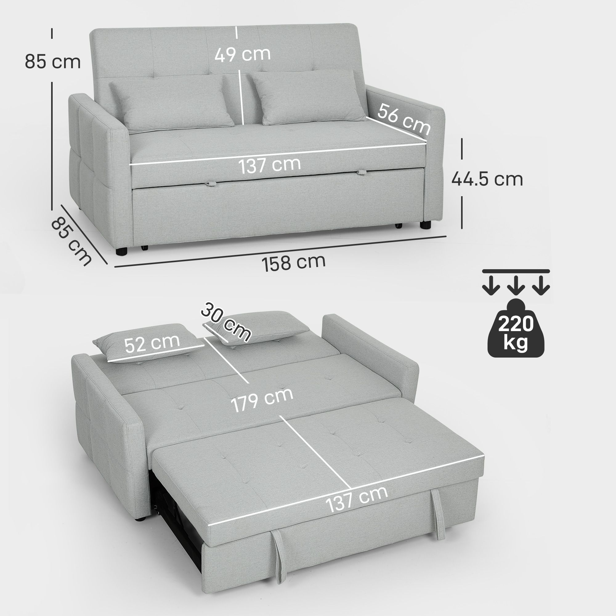 SOUTHLEY 2 Seater Sofa Bed Three Way Convertible - Light Grey