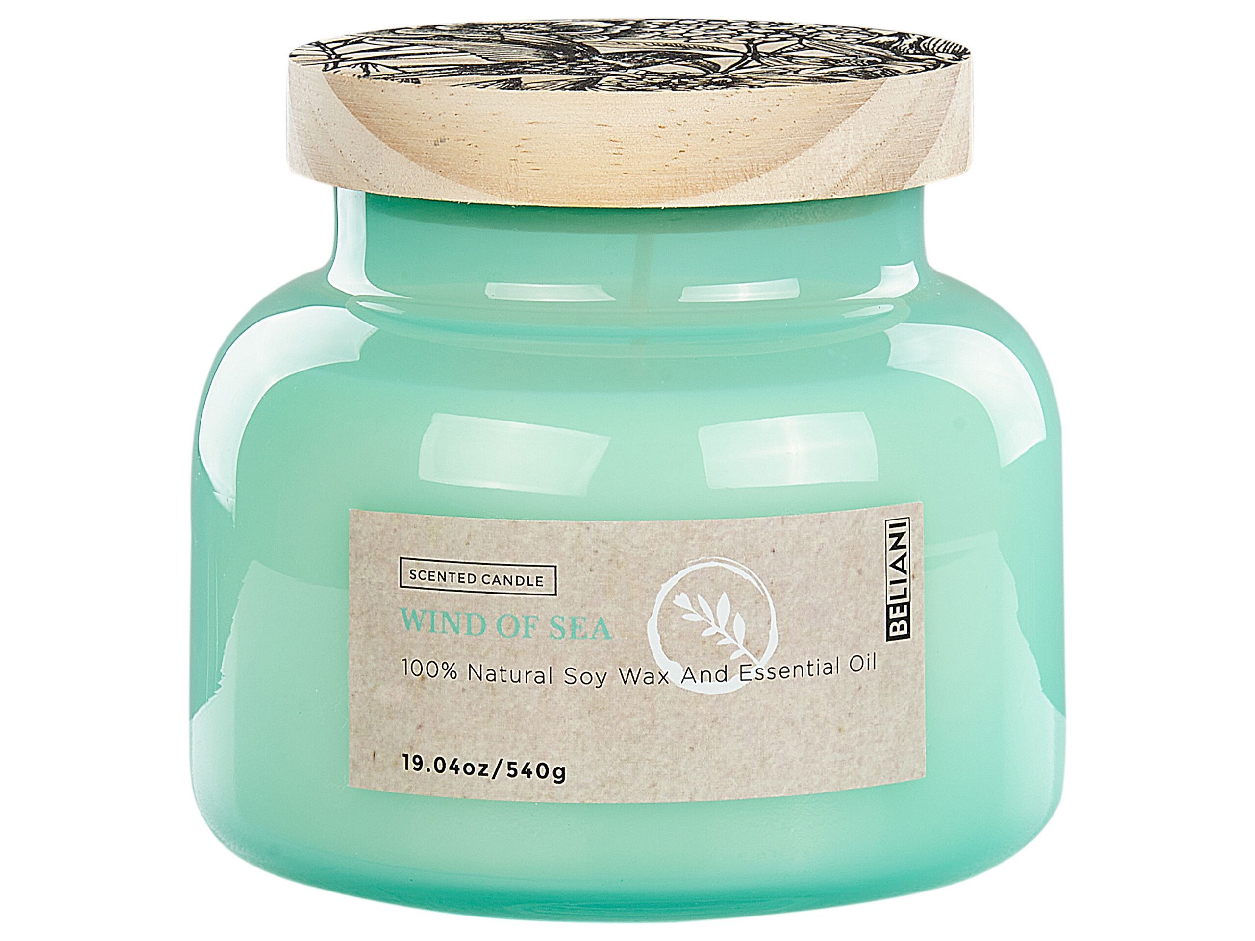 Add a fresh, natural aroma to your everyday space with this candle. Made out of soy wax, the piece can burn for many hours, producing a wonderful aroma of sea wind. The glass jar of candle in teal colour makes it also a great decorative element, which, placed on a coffee table, will definitely draw attention of your houseguests. Details: Color: Blue. Main material: Soy Wax. Additional material: Glass, Cotton.
