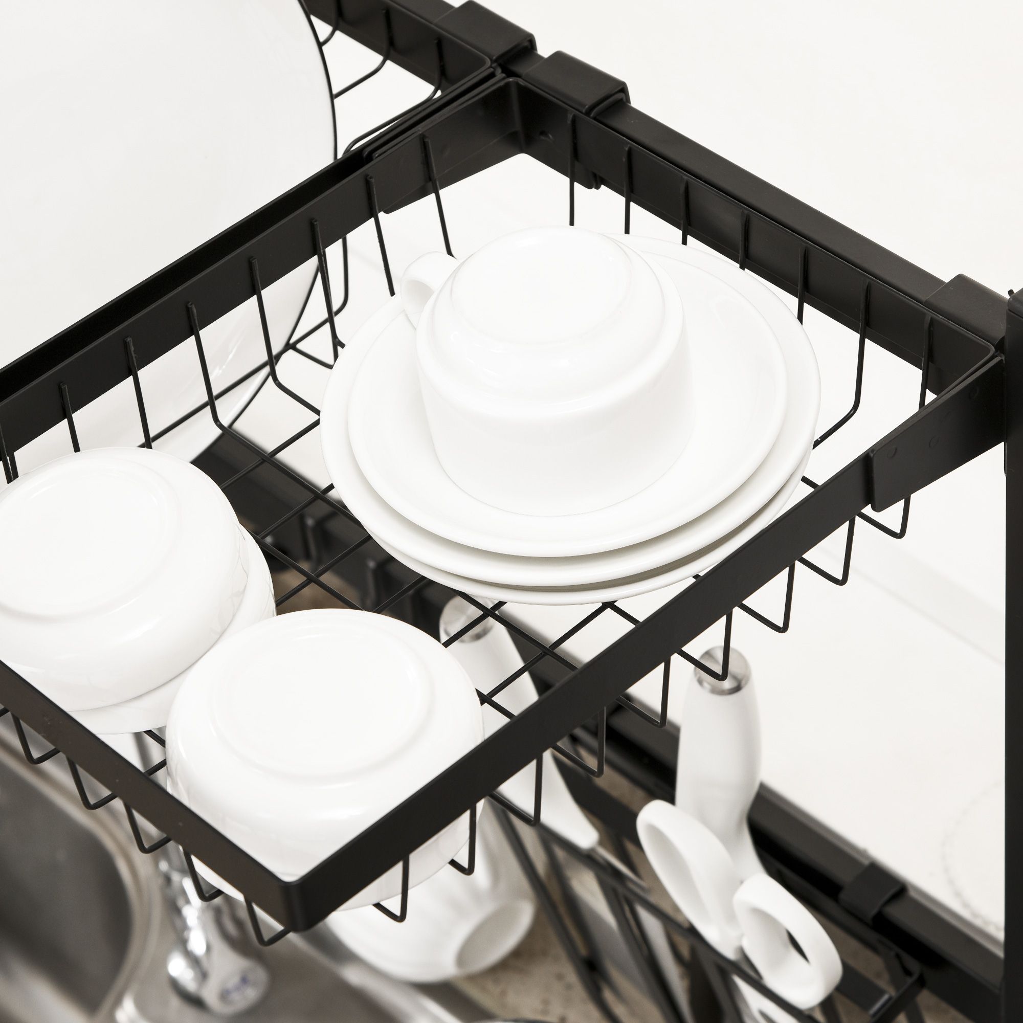 Space Saving 2 Tier Adjustable Dish Drainer Over The Sink Dish Drying Rack, Black