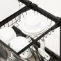 - Features a bowl rack, a fruit basket, a dish rack, a side utensil holder, a cutlery holder, a detergent holder, a chopping board rack, 5 hooks, and a cutting board holder to keep your utensils organized