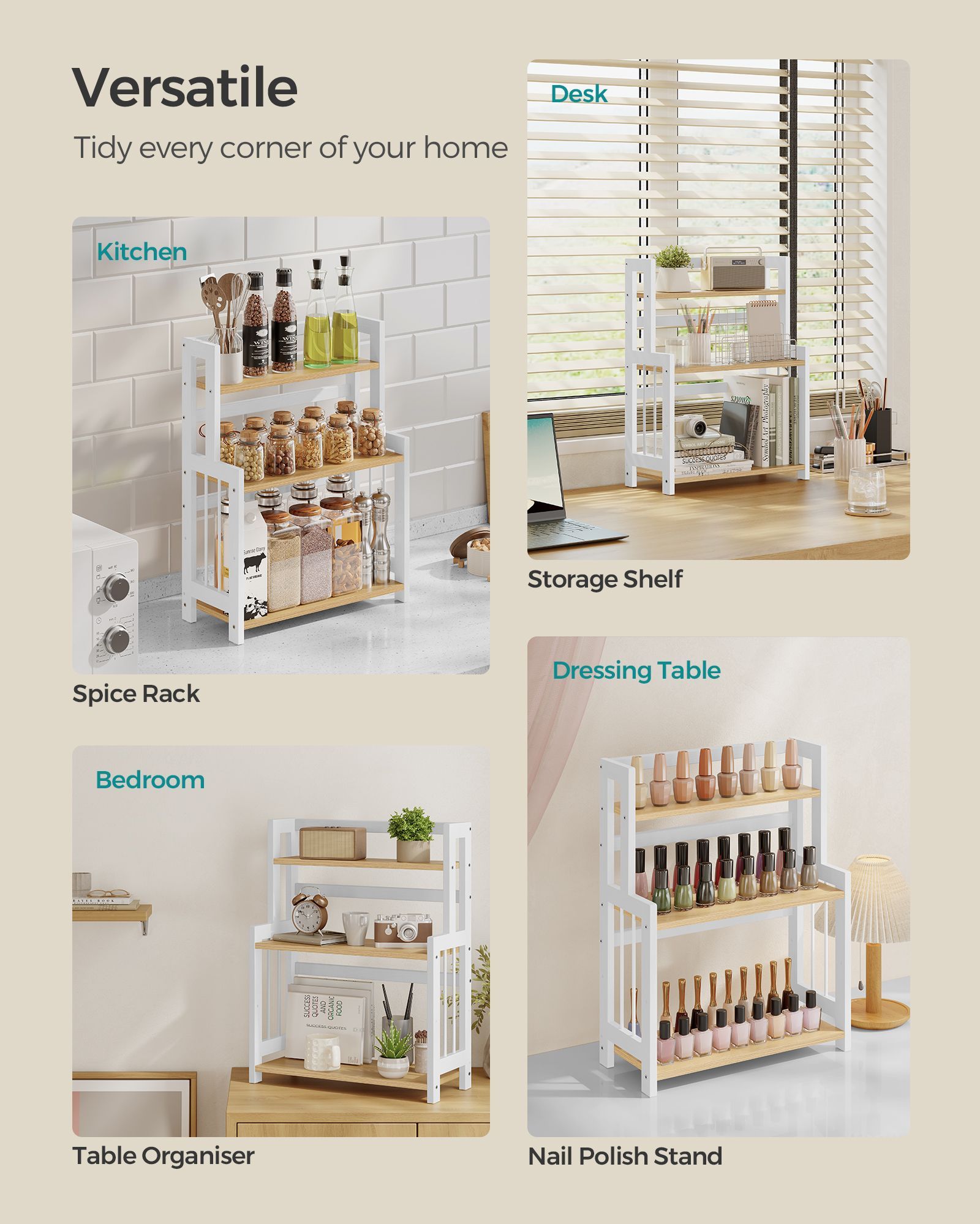 Spice Rack - SERRAH 3 Tier Countertop Bamboo Frame - Natural Oak