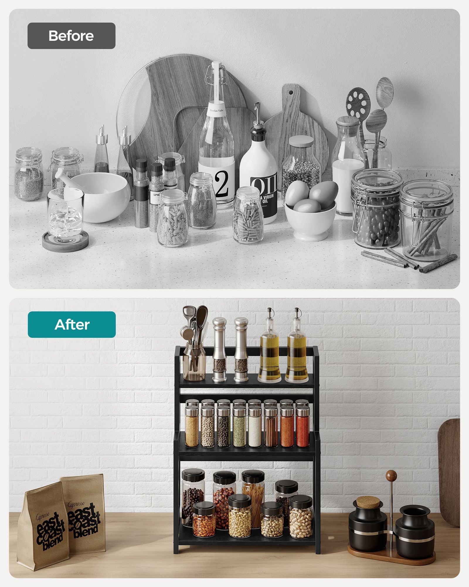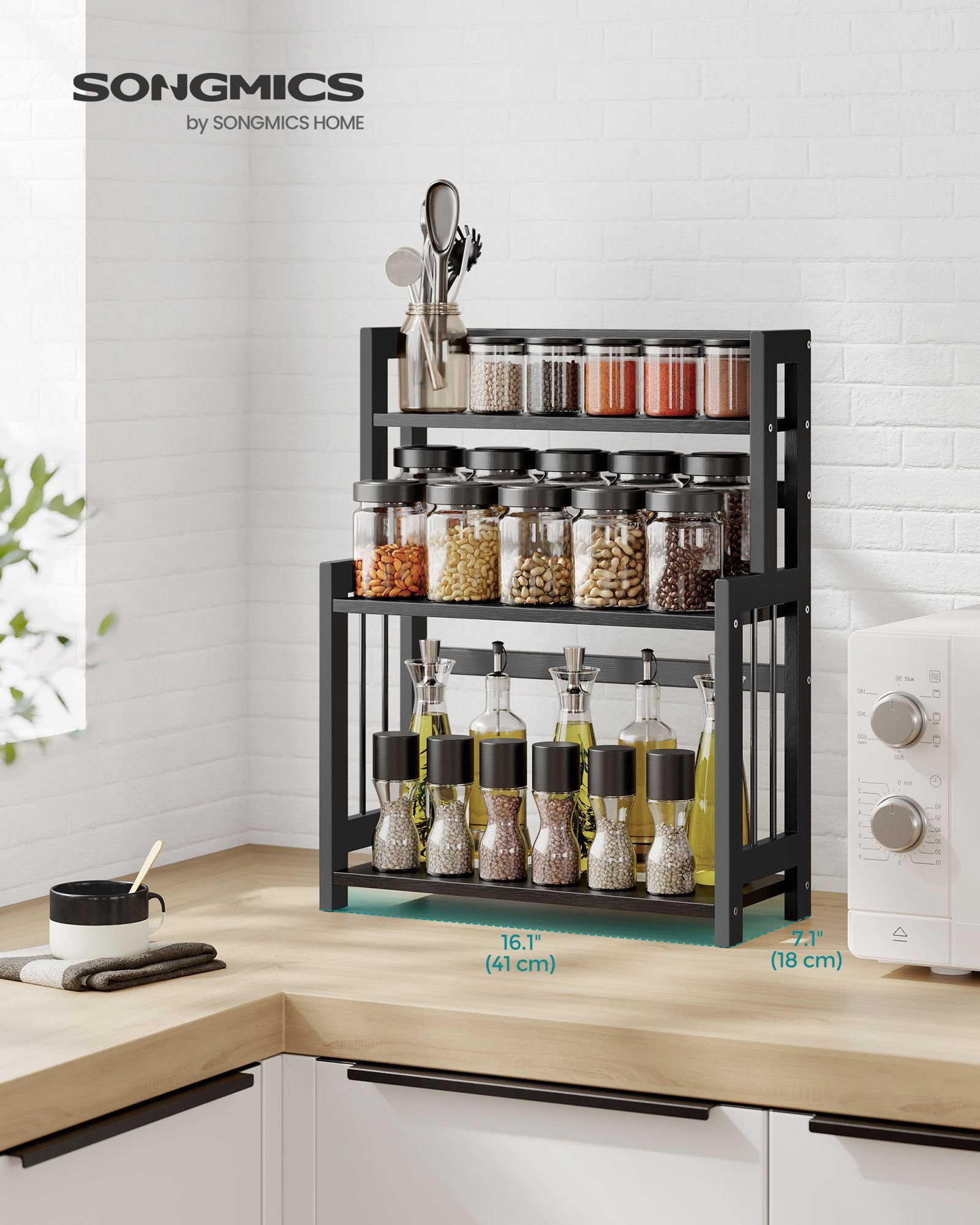Spice Rack - SERRAH 3 Tier Countertop Bamboo Frame Rack - Ebony Black