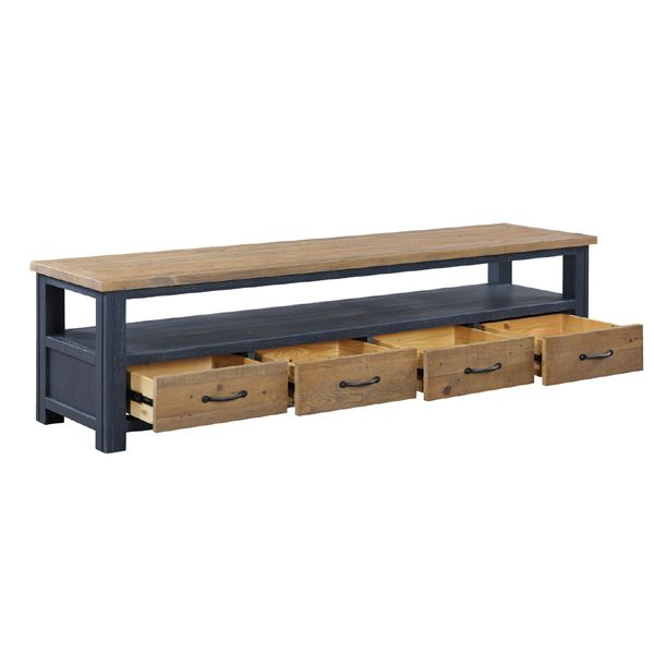 Splatter Reclaimed Wood Large TV Stand with Four Drawer and Open Shelf - Blue