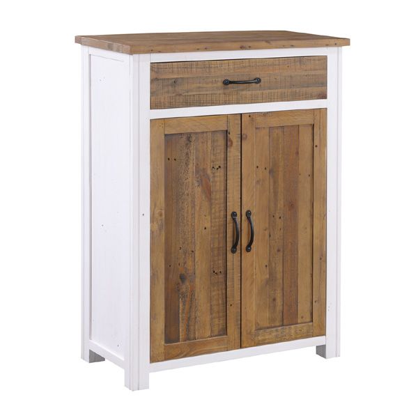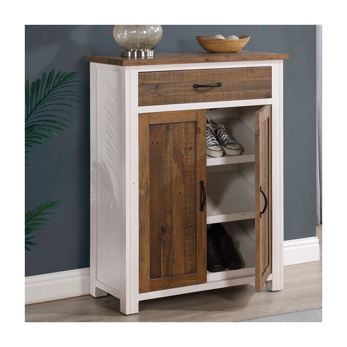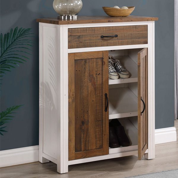 Splatter Reclaimed Wood Shoe Cabinet with Door and Drawer - White