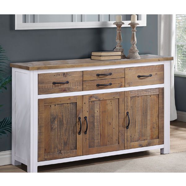 Splatter Reclaimed Wood Sideboard with 4 Drawer and 3 Door Cupboard - White