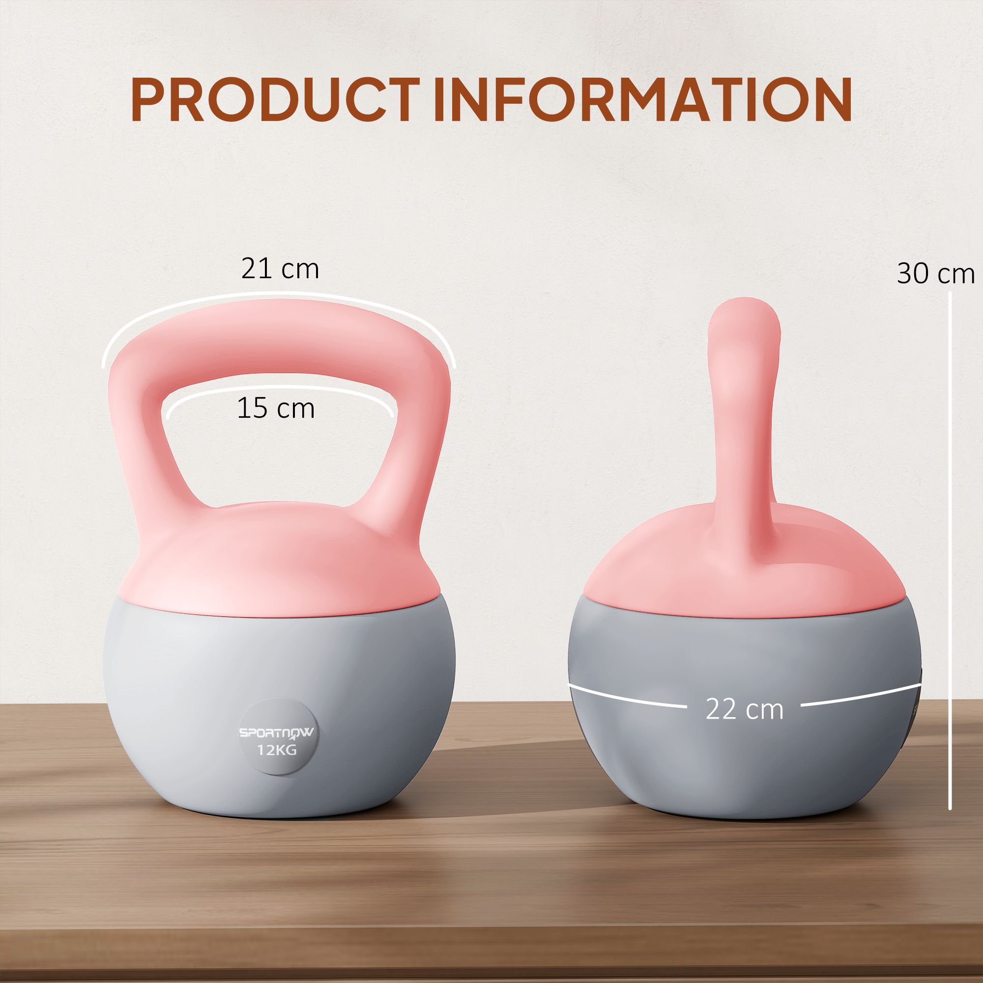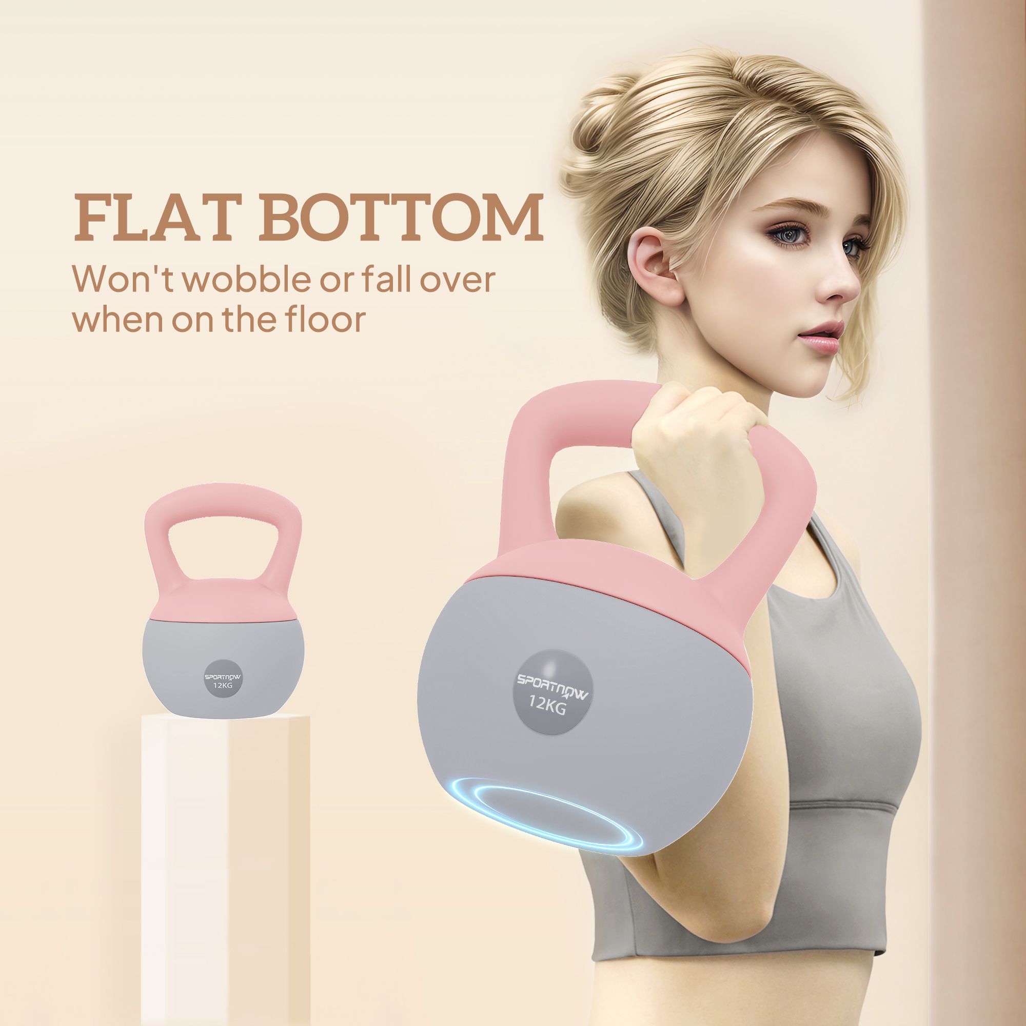 SPORTEDGE 12KG Soft Kettlebell with Non Slip Handle for Home Gym - Pink Grey