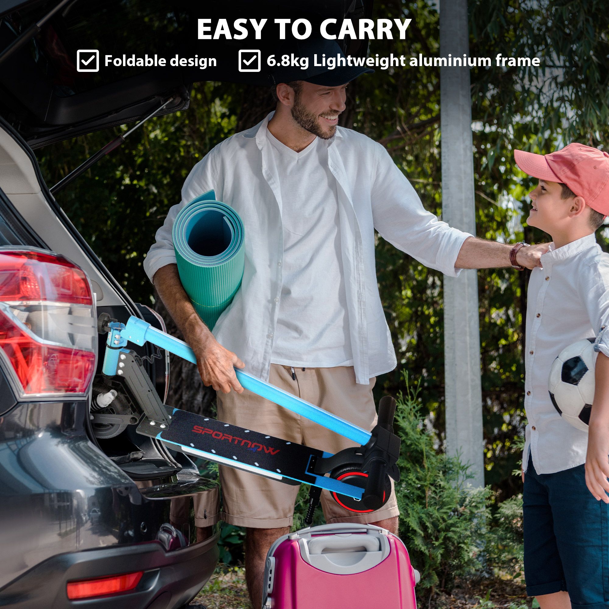SPORTEDGE Folding Electric Scooter for Kids Age 6-14 with Dual Brakes, Front Suspension, LED Colourful Lights and Display, Blue