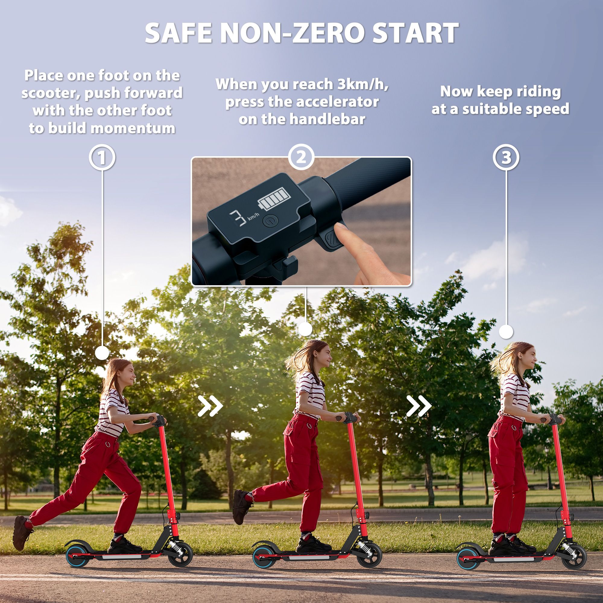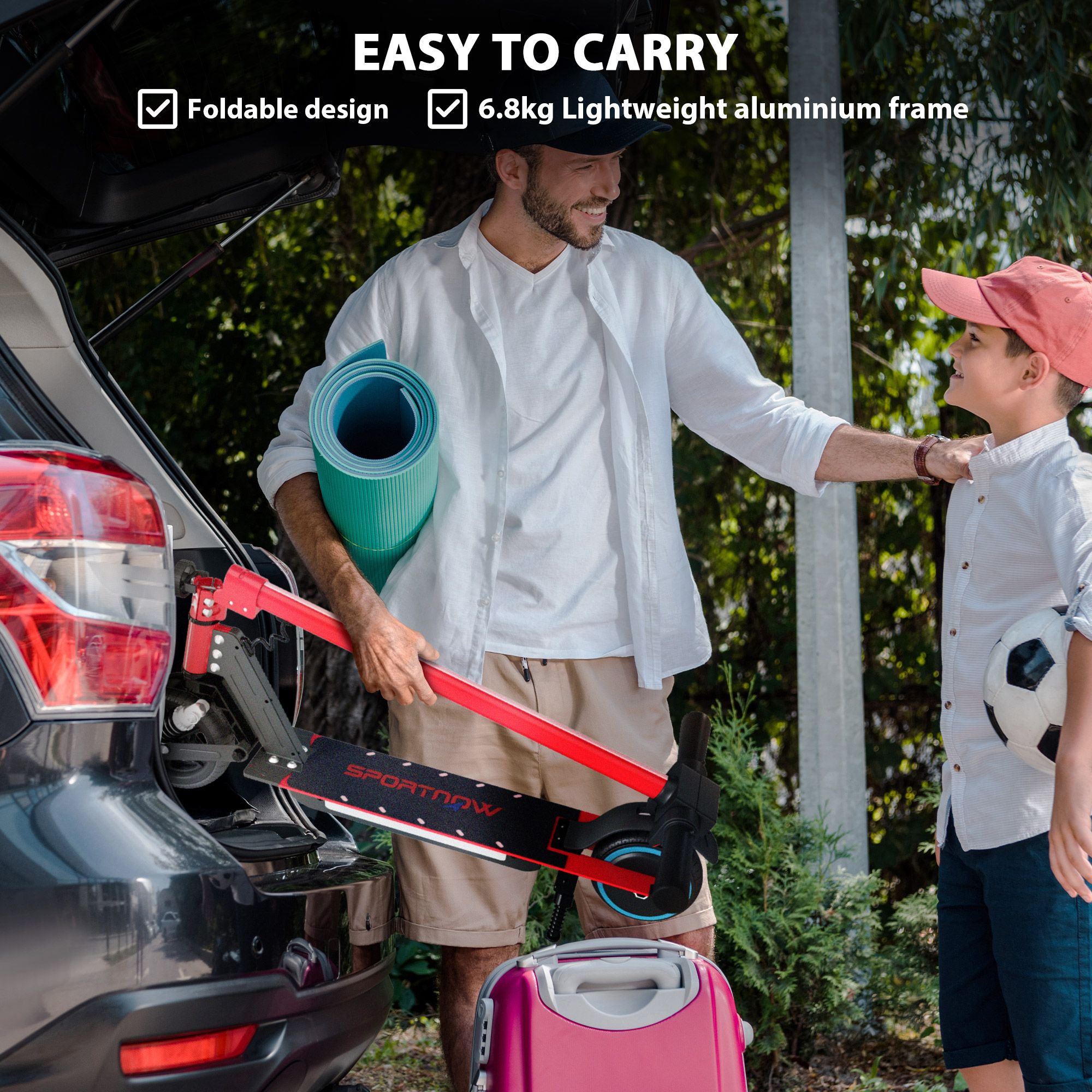 SPORTEDGE Folding Electric Scooter for Kids Age 6-14 with Dual Brakes, Front Suspension, LED Colourful Lights and Display, Red