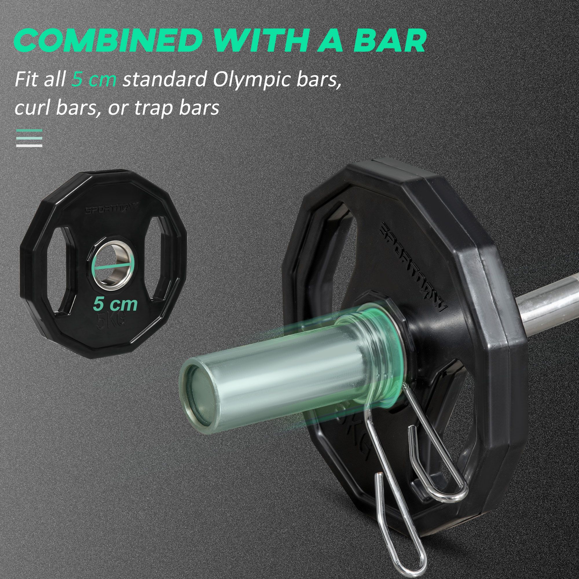 SPORTEDGE Olympic Weight Plates Set 2x5kg Metal Rubber Bumper Black